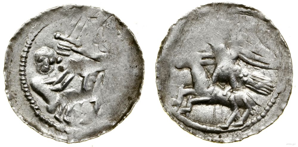 | Opis: | Polska - Władysław II Wygnaniec (1138–1146), denar, (1138–1146), Aw: Rycerz z mieczem i tarczą, stojący nad jeńcem, legenda; Rw: Orzeł w locie, łapiący zająca, legenda |