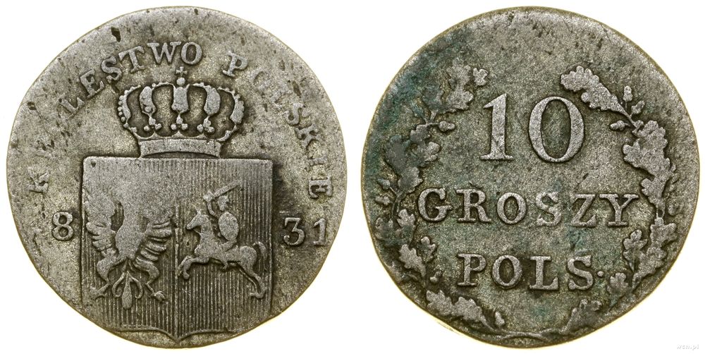 | Opis: | Polska - Powstanie Listopadowe (1830–1831), 10 groszy, 1831, Warszawa, szpony Orła zgięte, nad wiązaniem wieńca jeden żołądź |