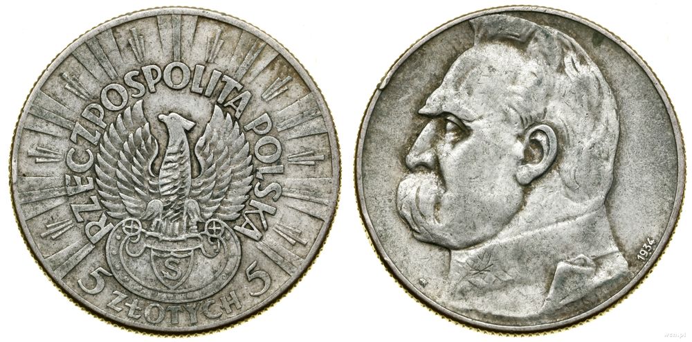 | Opis: | Polska - II Rzeczpospolita Polska (1918–1939) - monety obiegowe, 5 złotych, 1934 S, Warszawa, Józef Piłsudski – Orzeł Strzelecki |