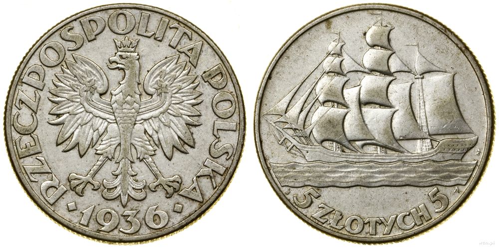 | Opis: | Polska - II Rzeczpospolita Polska (1918–1939) - monety obiegowe, 5 złotych, 1936, Warszawa, Żaglowiec |