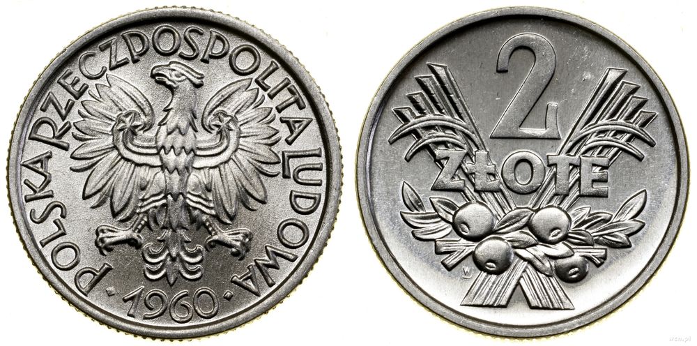 | Opis: | Polska - Polska Rzeczpospolita Ludowa (1952–1989) - monety obiegowe i kolekcjonerskie, 2 złote, 1960, Warszawa |