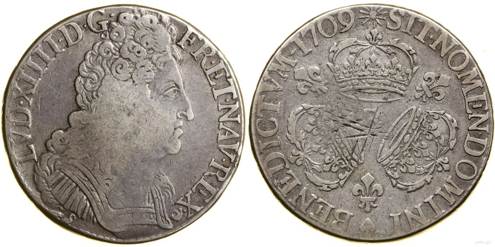 | Opis: | Francja - Ludwik XIV Wielki (1643–1715), Ecu aux troix couronnes, 1709 B, Rouen |