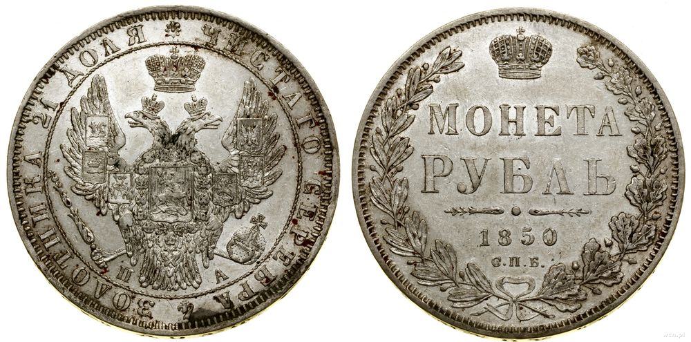 | Opis: | Rosja - Mikołaj I (1825–1855), rubel, 1850 СПБ ПА, Petersburg, św. Jerzy bez płaszcza |