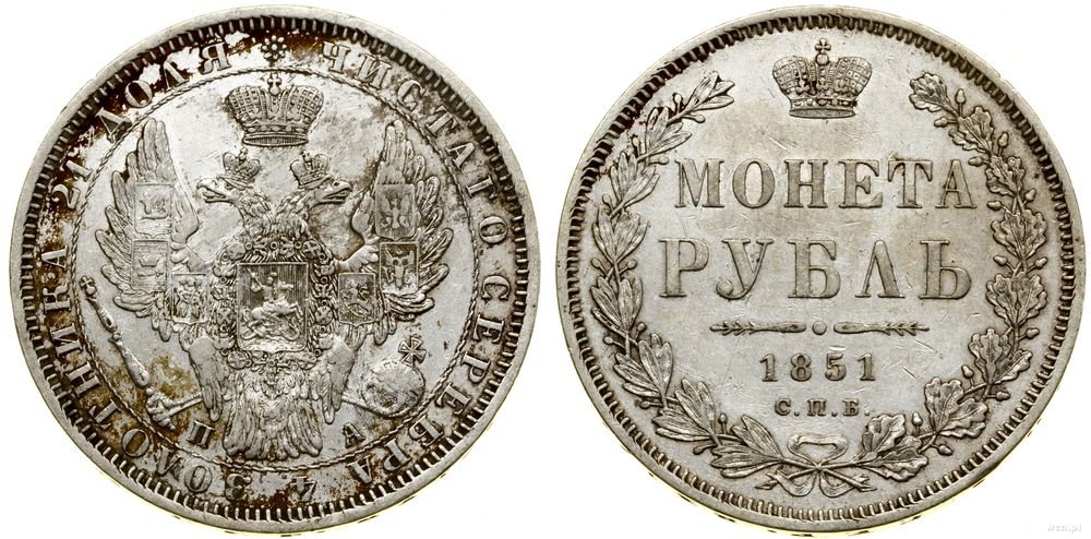 | Opis: | Rosja - Mikołaj I (1825–1855), rubel, 1851 СПБ ПА, Petersburg |