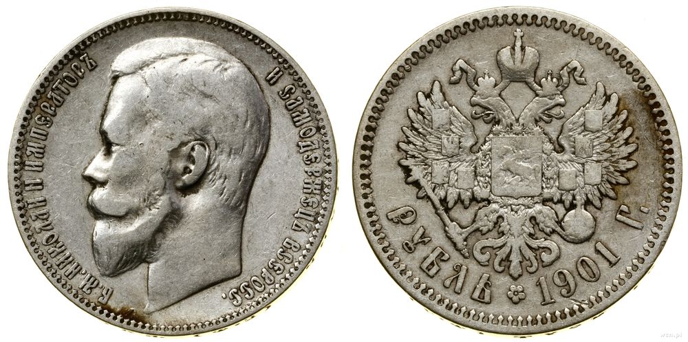 | Opis: | Rosja - Mikołaj II (1894–1917), rubel, 1901 (Ф•З), Petersburg, mniejsza głowa cara |