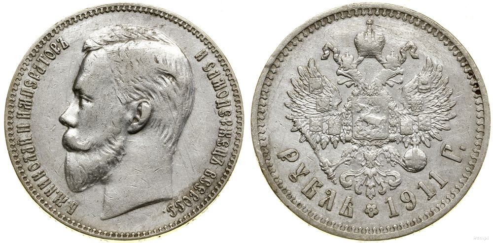 | Opis: | Rosja - Mikołaj II (1894–1917), rubel, 1911 (Э•Б), Petersburg |