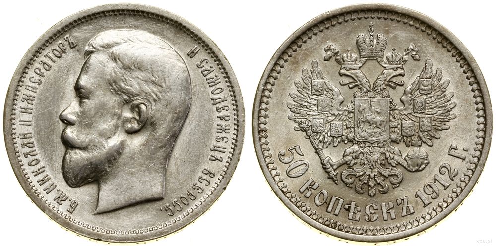 | Opis: | Rosja - Mikołaj II (1894–1917), 50 kopiejek, 1912 (Э•Б), Petersburg |
