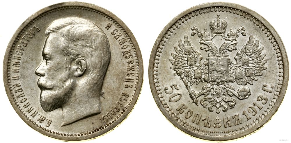 | Opis: | Rosja - Mikołaj II (1894–1917), 50 kopiejek, 1913 (B•C), Petersburg |
