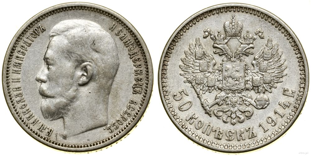 | Opis: | Rosja - Mikołaj II (1894–1917), 50 kopiejek, 1914 (B•C), Petersburg |