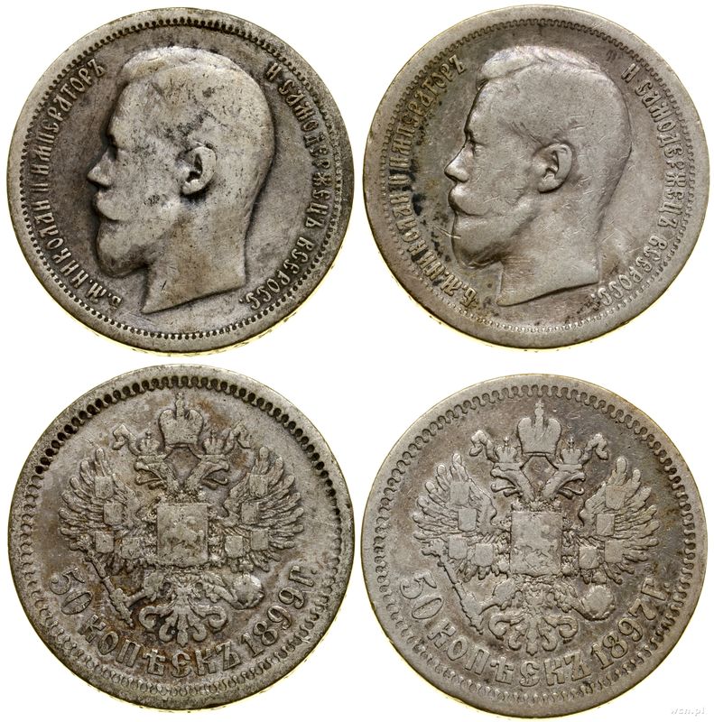 Rosja, zestaw: 2 x 50 kopiejek, 1897 (★) i 1899 (А•Г)