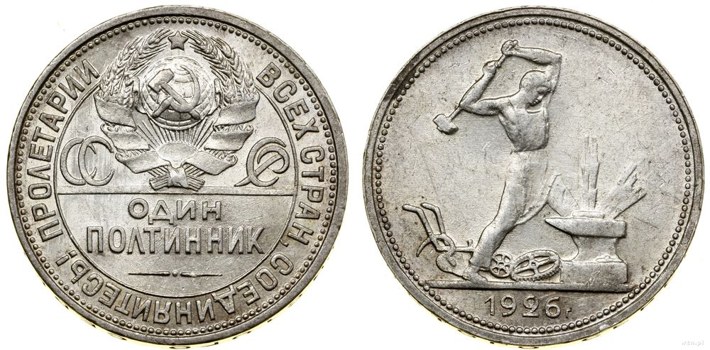 | Opis: | Rosja - ZSRS (1922–1991), połtinnik (50 kopiejek), 1926 П•Л, Leningrad (Petersburg) |