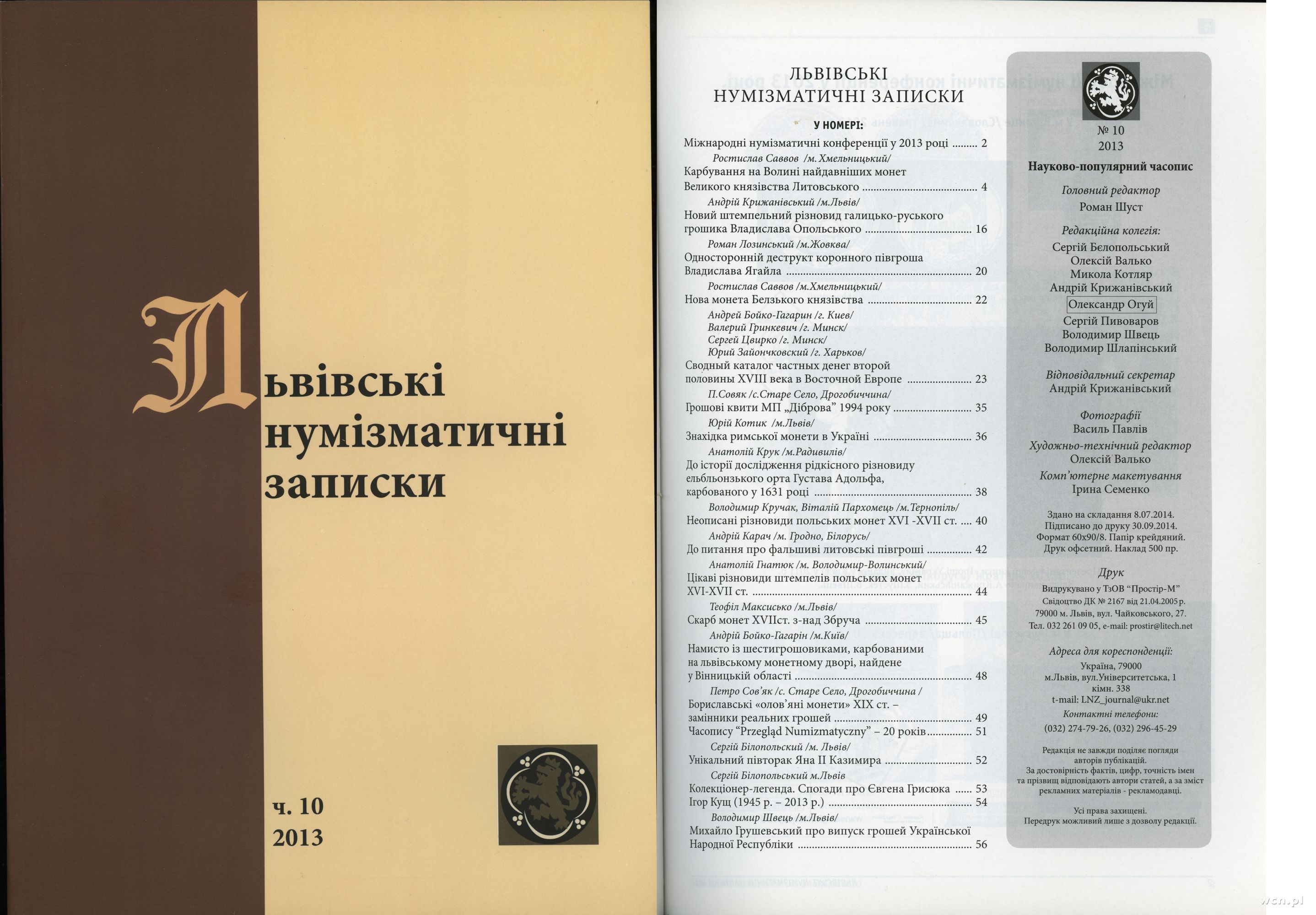 czasopisma, Львiвськi нумiзматичнi записки (Lwowskie Zapiski Numizmatyczne), nr 10/2013