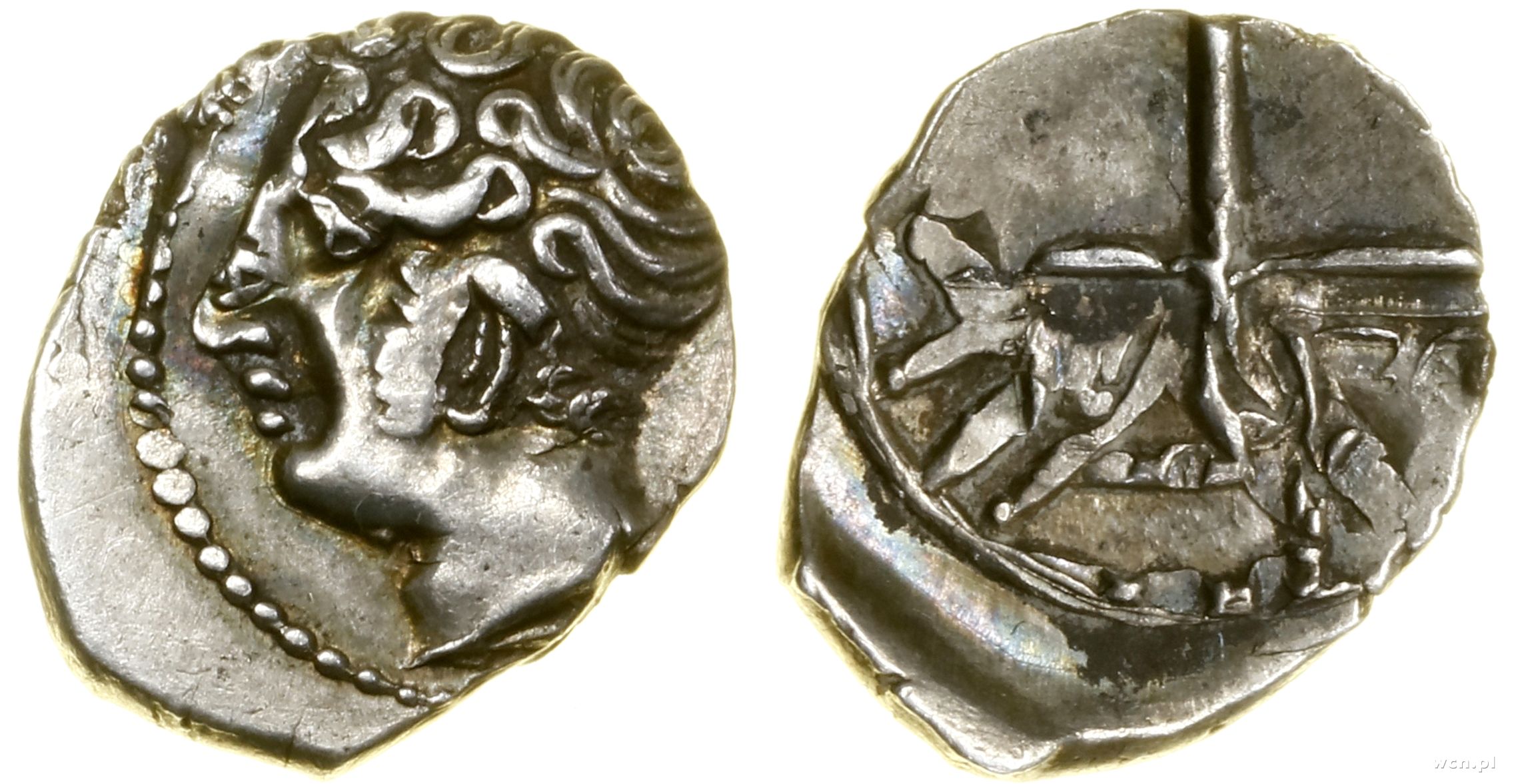 Aw: Głowa Apollo w lewo, Rw: Koło z czterema szprychami, ...  | II- |