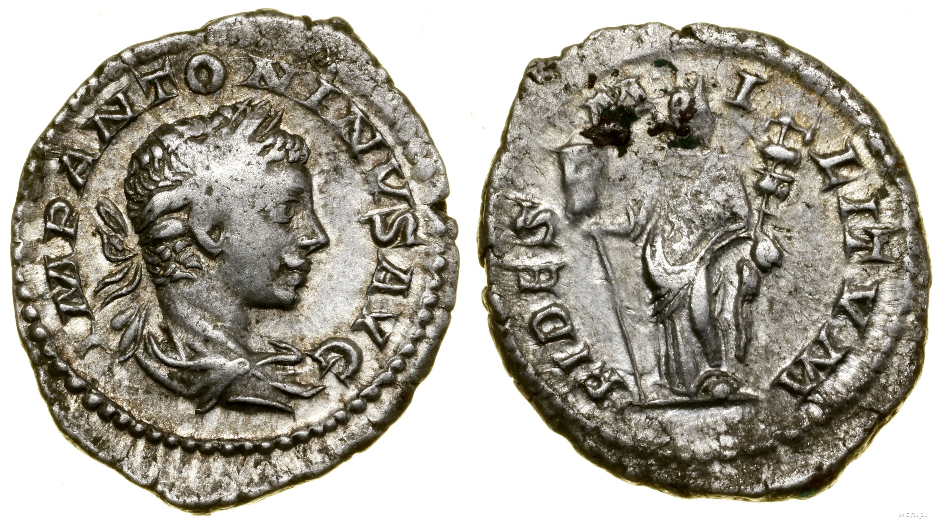 Aw: Popiersie cesarza w prawo, IMP ANTONINVS AVG; Rw: Fid...  | III |