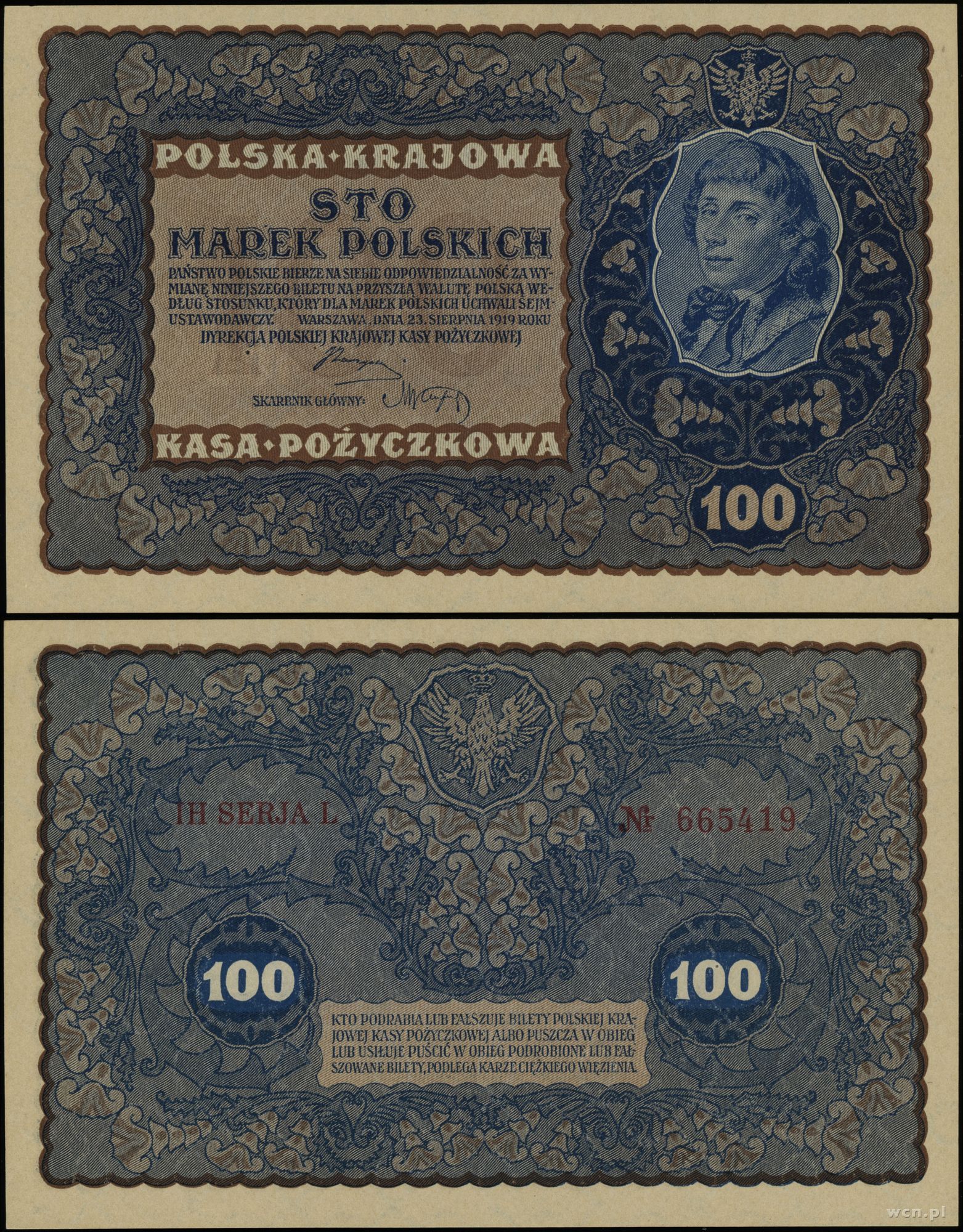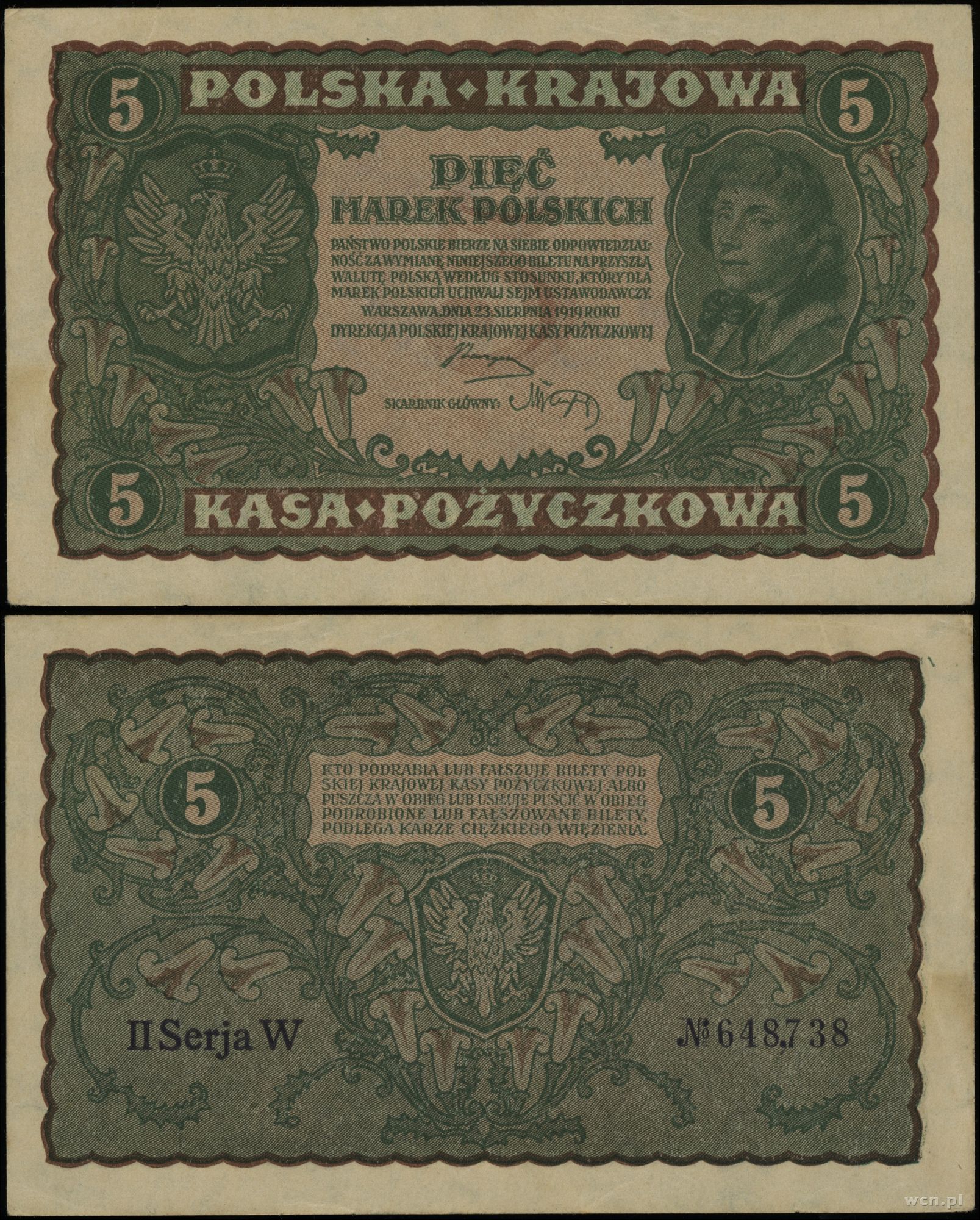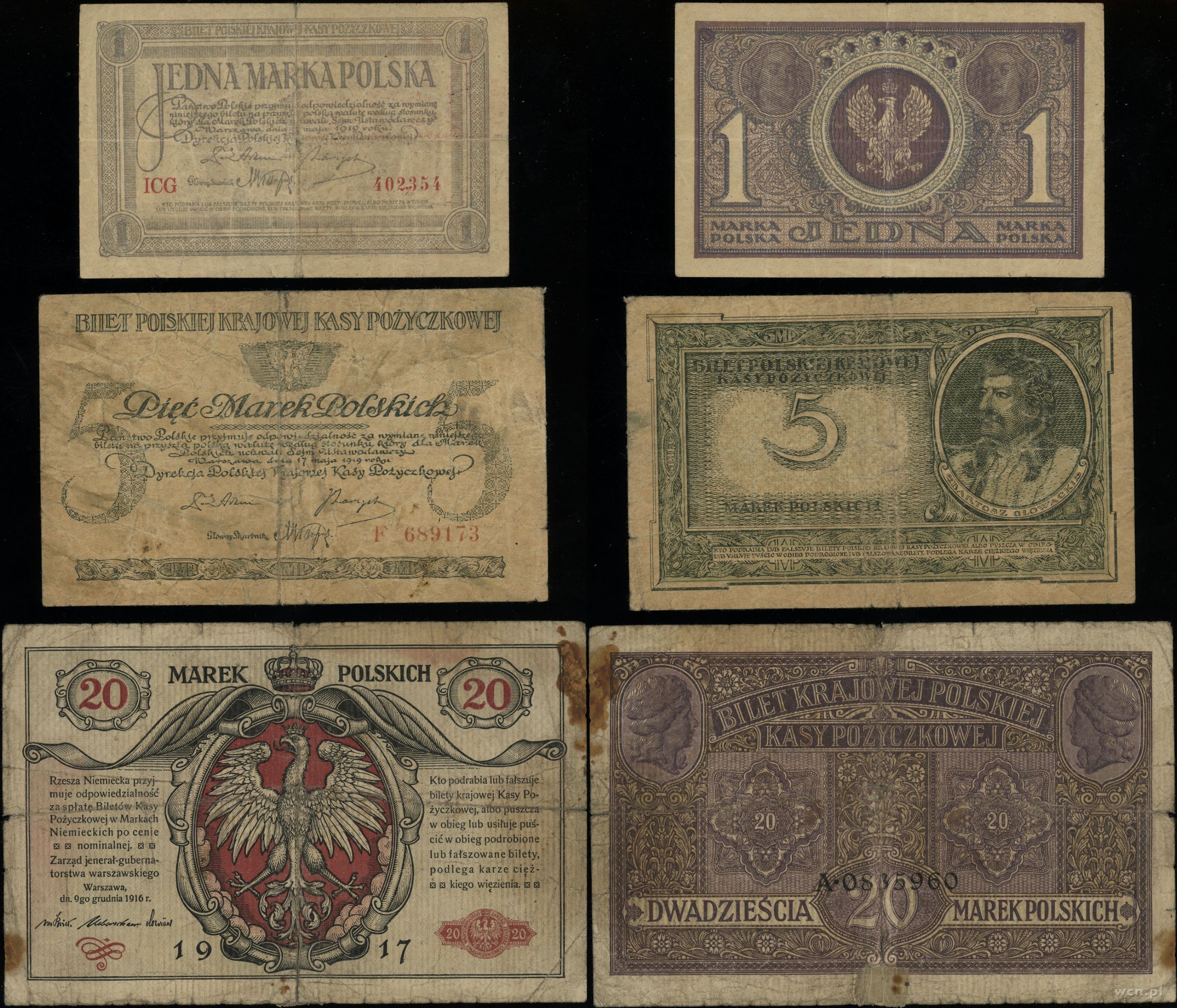 1) 20 marek polskich 9.12.1916 jenerał seria A 2) 1 marka... | V/VI |