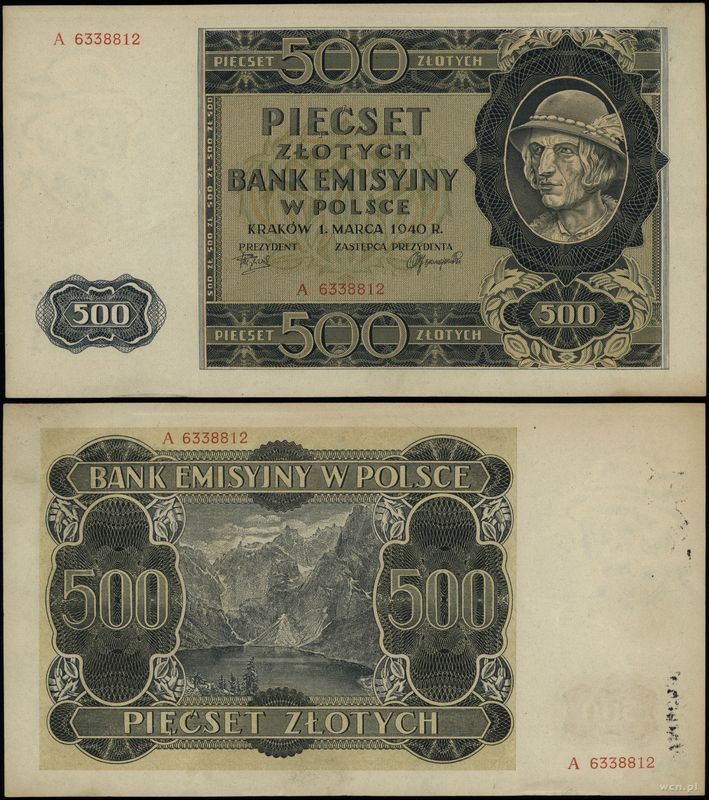 | Opis: | Polska - Generalna Gubernia (1939–1945) - Bank Emisyjny w Polsce, 500 złotych, 1.03.1940, seria A, numeracja 6338812 |