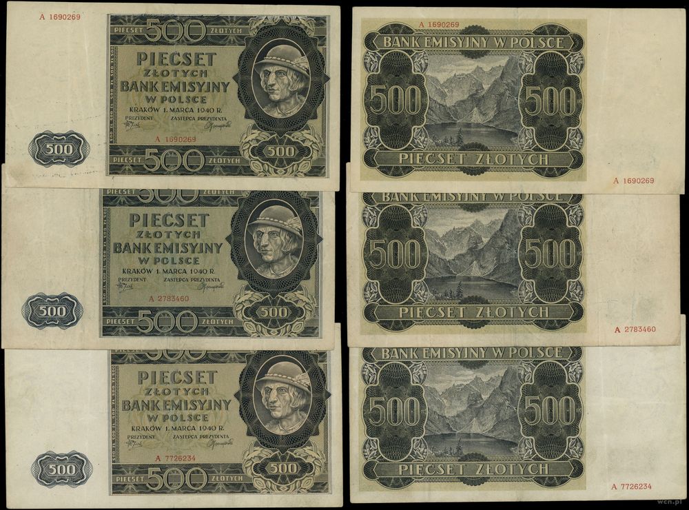 Polska, zestaw: 3 x 500 złotych, 1.03.1940