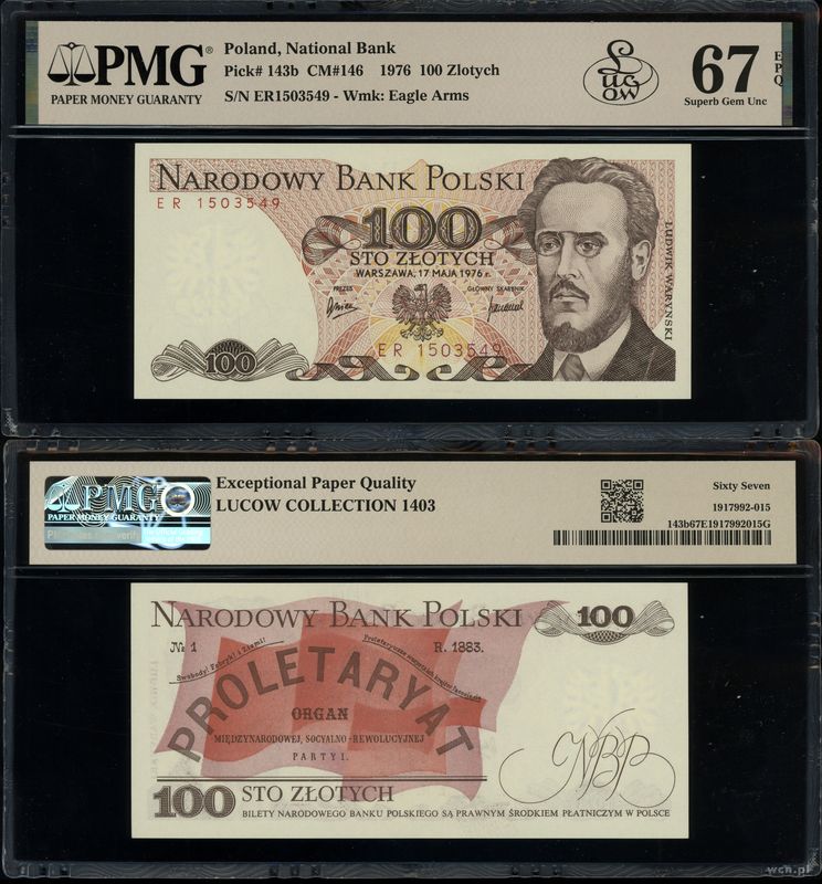 | Opis: | Polska - Polska Rzeczpospolita Ludowa (1952–1989), 100 złotych, 17.05.1976, seria ER, numeracja 1503549 |