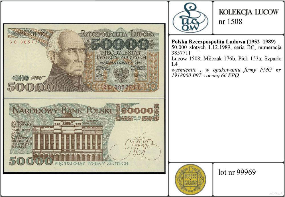 | Opis: | Polska - Polska Rzeczpospolita Ludowa (1952–1989), 50.000 złotych, 1.12.1989, seria BC, numeracja 3857711 |