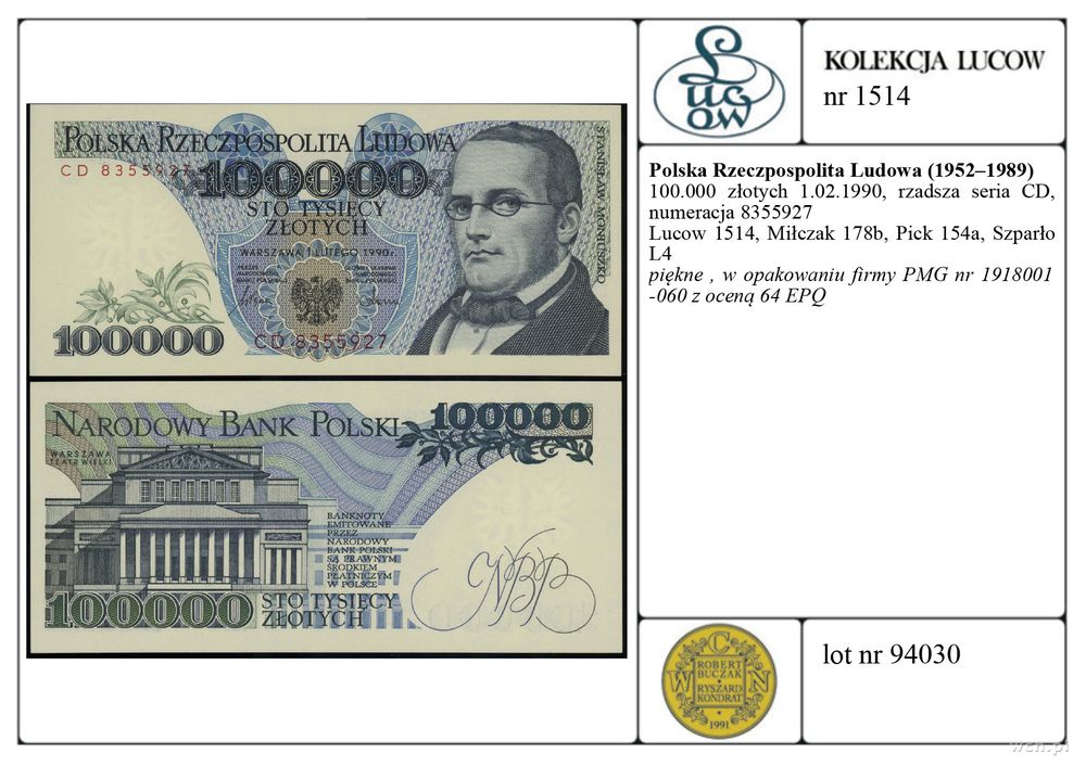 | Literatura: | Lucow 1514, Miłczak 178b, Pick 154a, Szparło L4 |