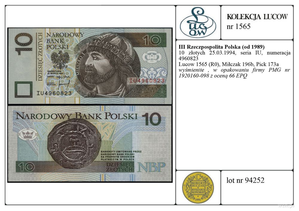 | Literatura: | Lucow 1565 (R0), Miłczak 196b, Pick 173a |