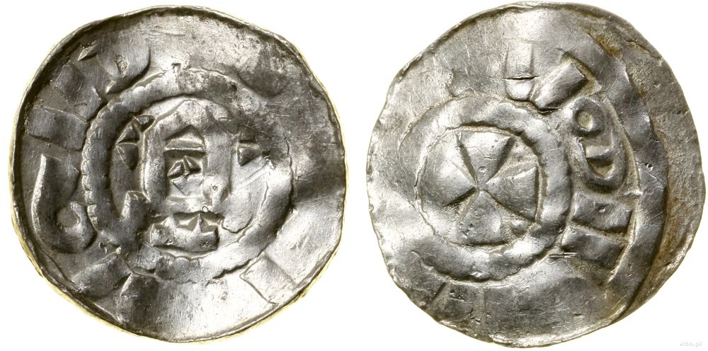 | Opis: | Niemcy - Saksonia - Magdeburg- arcybiskupstwo - anonimowy biskup, denar krzyżowy typu II, X/XI w., Aw: Kapliczka z krzyżem z klinów wewnątrz, legenda, Rw: Krzyż kawalerski, legenda |