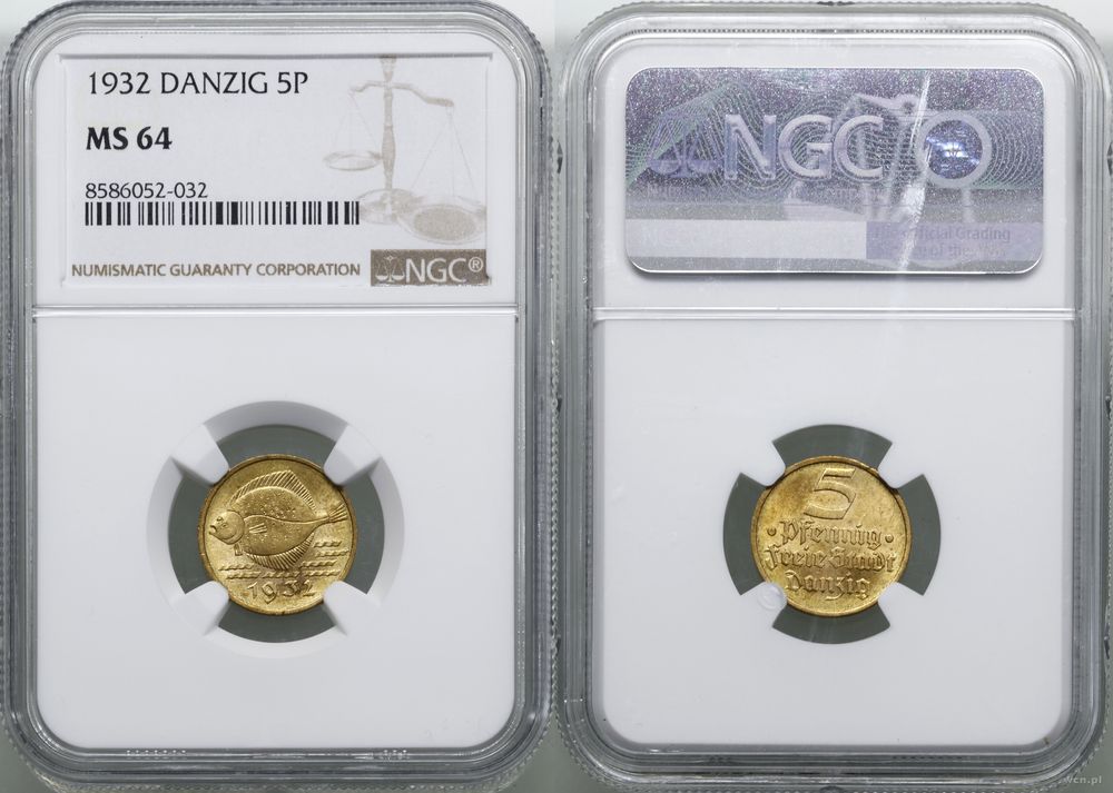 | Opis: | Polska - Wolne Miasto Gdańsk (1920–1939), 5 fenigów, 1932, Berlin, Flądra |