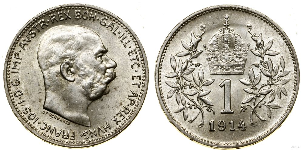 | Opis: | Austria - Franciszek Józef I (1848–1916), 1 korona, 1914, Wiedeń |