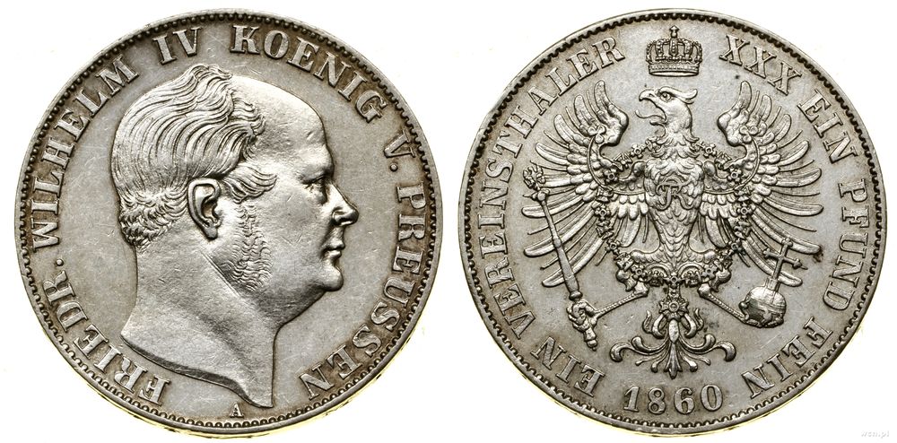 | Opis: | Niemcy - Prusy – królestwo (1701–1918) - Fryderyk Wilhelm IV (1840–1861), talar, 1860 A, Berlin |