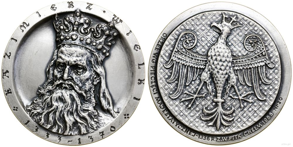 Polska, medal z serii królewskiej chełmskiego oddziału PTTK – Kazimierz Wielki, 1985