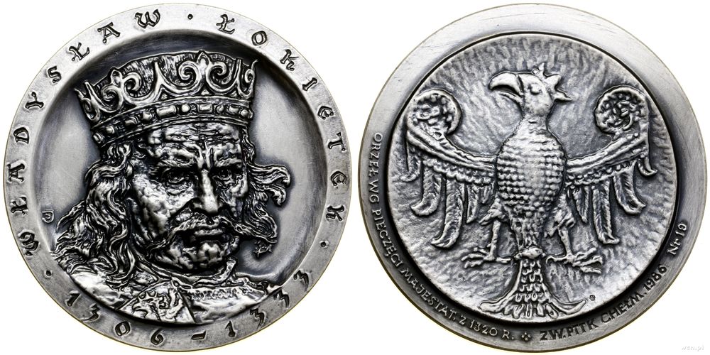 | Opis: | Polska - Polska Rzeczpospolita Ludowa (1952–1989) - Mennica Warszawska, medal z serii królewskiej chełmskiego oddziału PTTK – Władysław Łokietek, 1989, Warszawa, Aw: Popiersie władcy w prawo, z lewej sygnatura JJ, WŁADYSŁAW ŁOKIETEK 1306–1333, Rw: Orzeł, ORZEŁ WG PIECZĘCI MAJESTATYCZNEJ Z 1320 R. - Z. W. PTTK CHEŁM 1986 Nr 19, projektował Jerzy Jarnuszkiewicz |