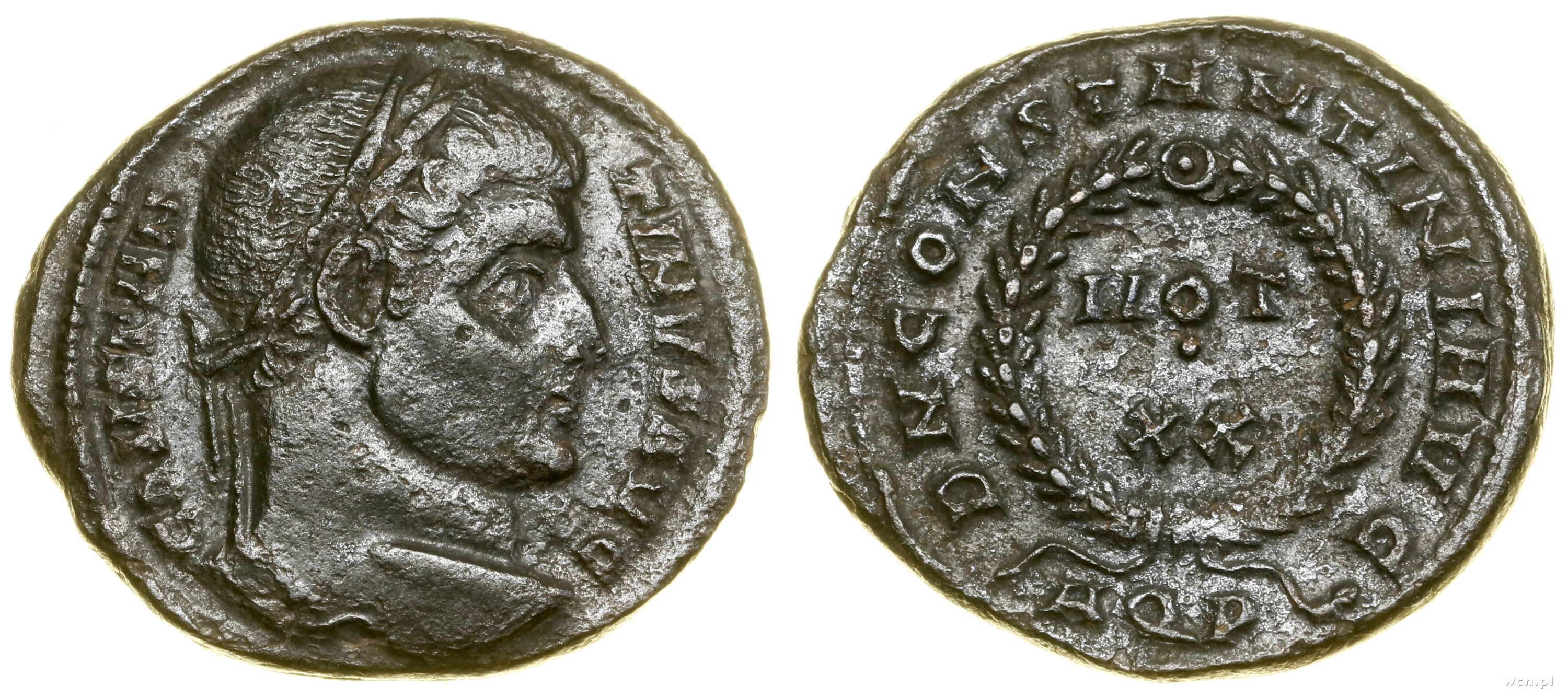 Aw: Popiersie cesarza w prawo, CONSTANTINVS AVG, Rw: W wi... | II- |