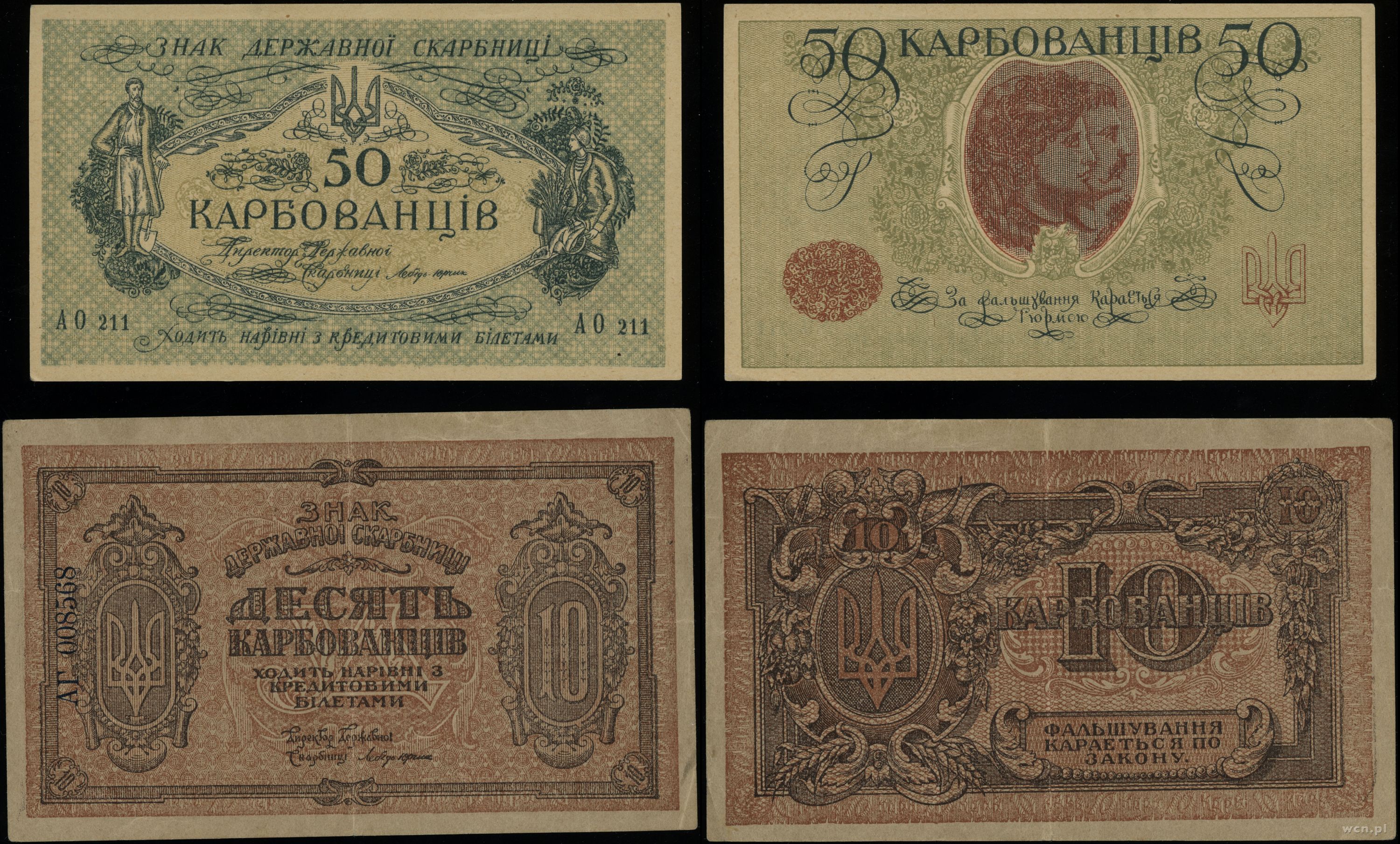 1) 10 karbowańców bez daty (1919), seria AГ (III+) 2) 50 ... | I-/III+ |