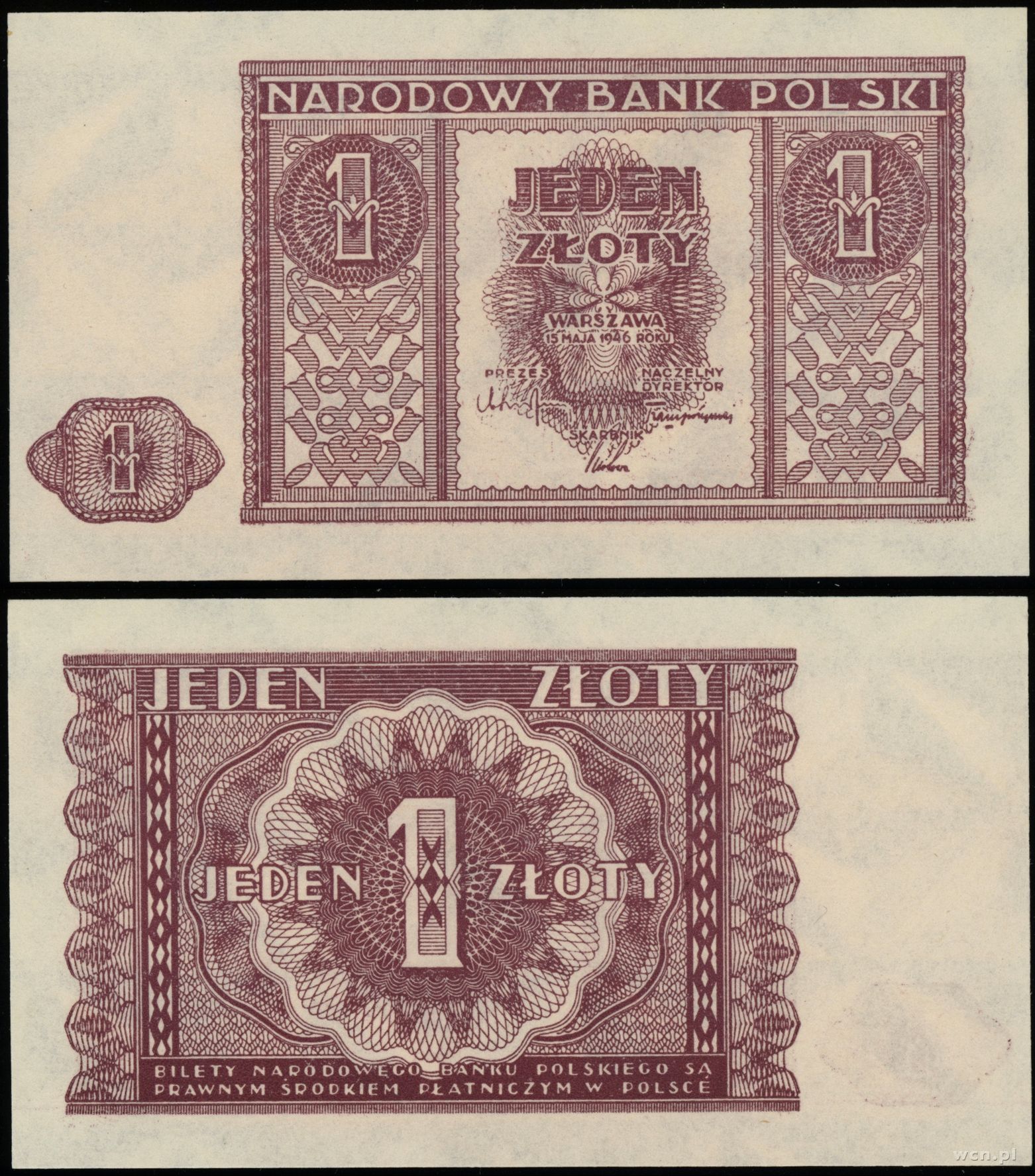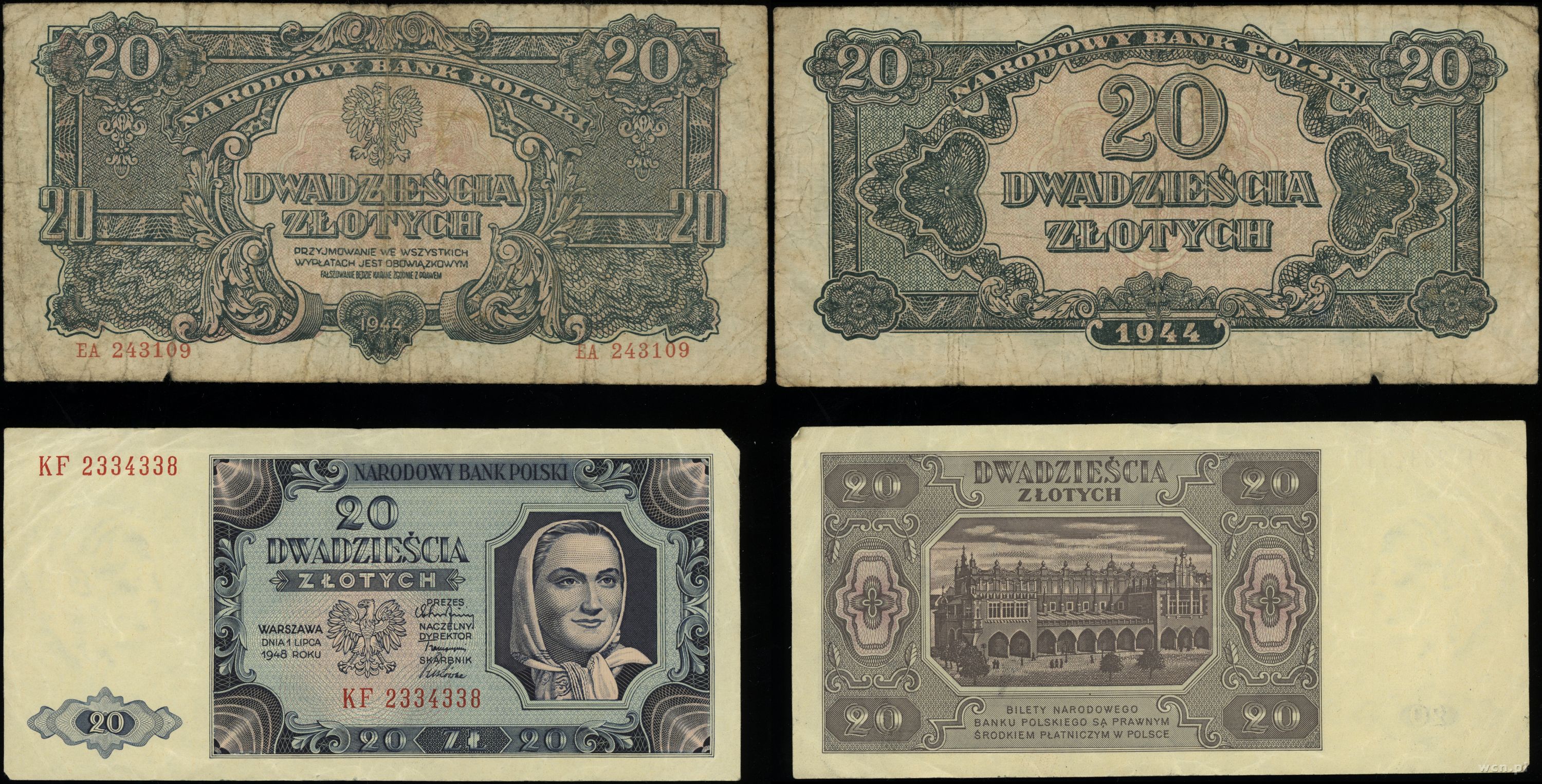 1) 1 złoty 1944 OBOWIĄŻKOWYM, seria EA 2) 5 złotych 1944 ... | III-/V- |