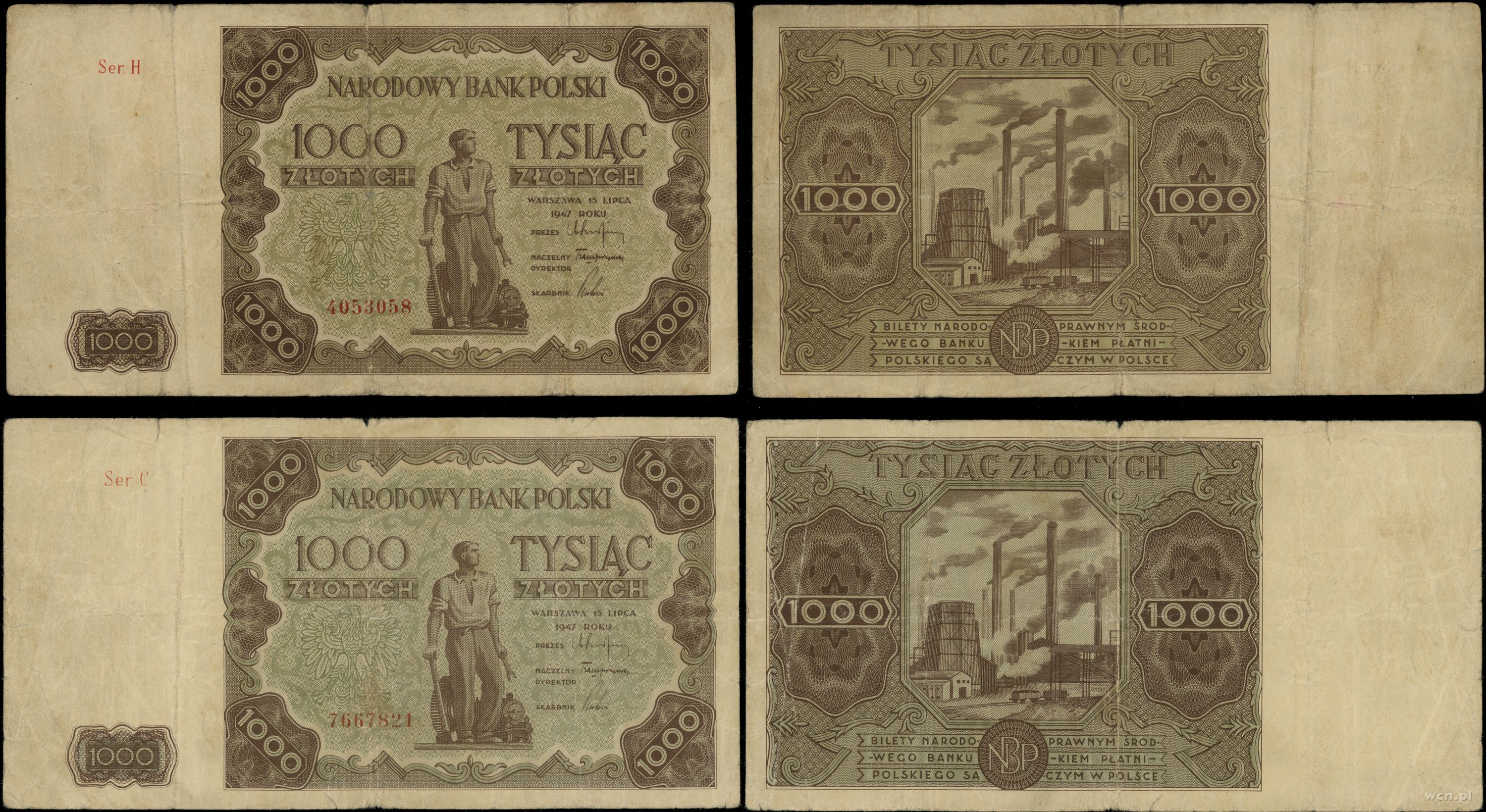 Polska, zestaw: 2 x 1.000 złotych, 15.07.1947