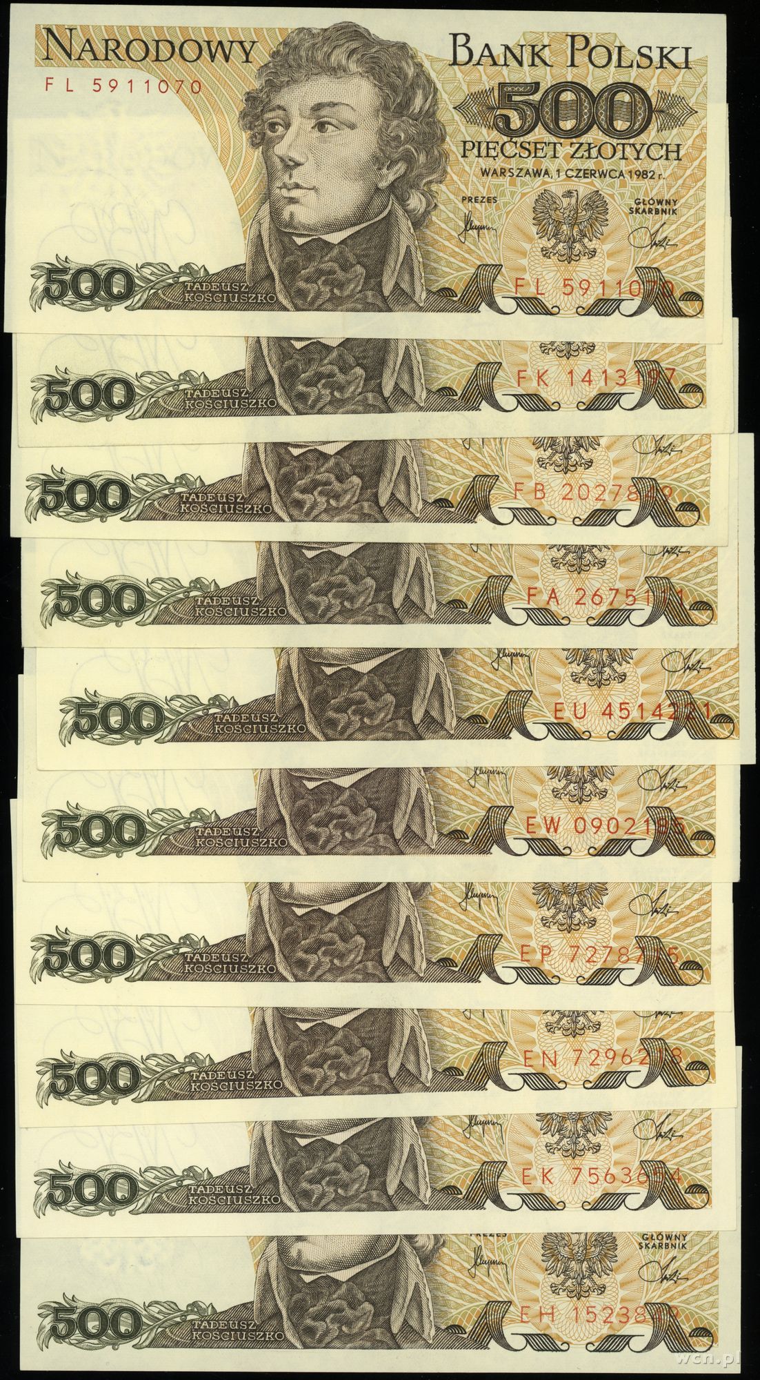 Polska, zestaw: 10 x 500 złotych, 1.06.1982