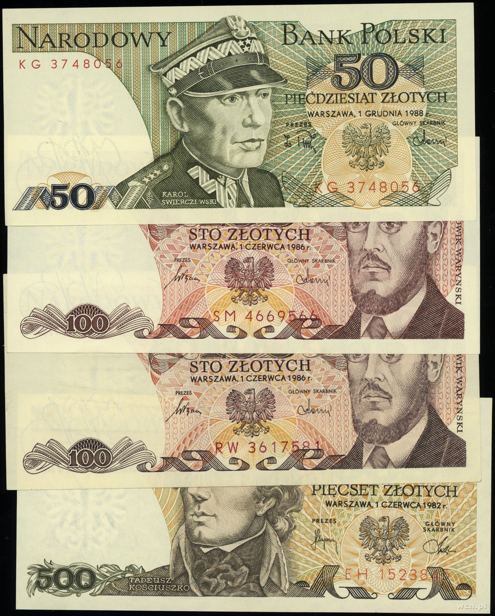 Polska, zestaw: 18 x 100 złotych, 1986–1988