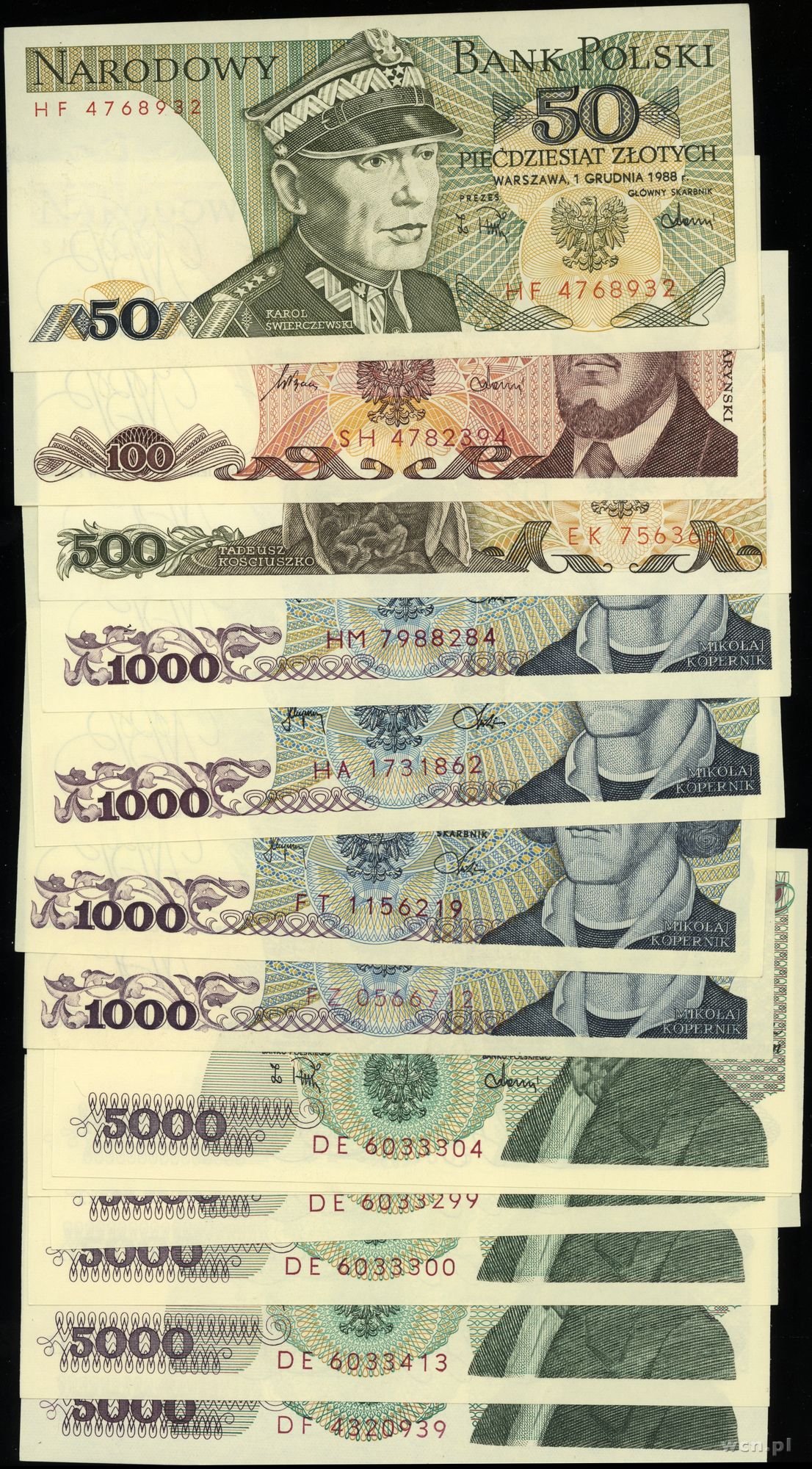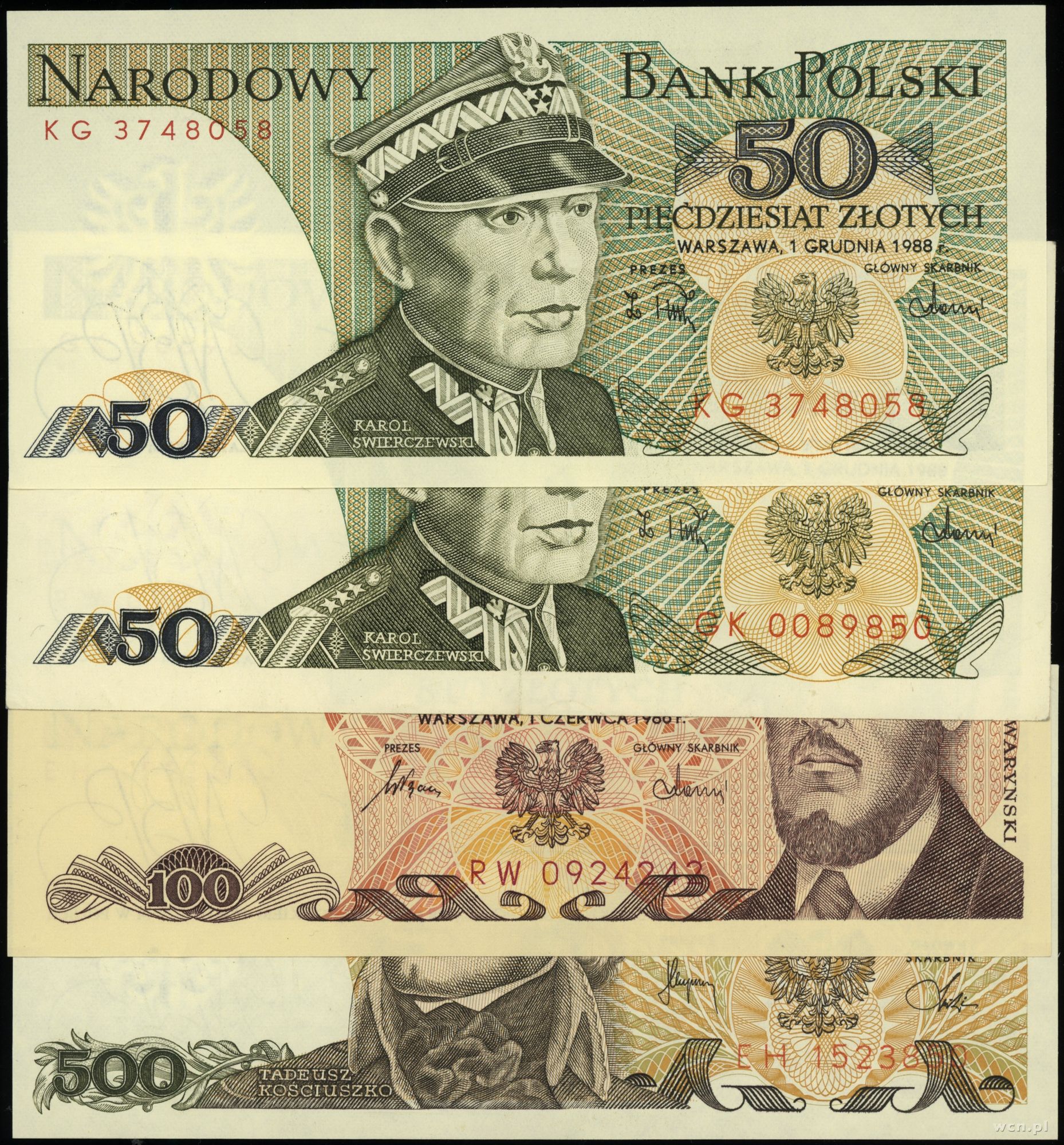 1) 50 złotych 1.12.1988 seria KG (st. I/I-) 2) 50 złotych... | I/II- |