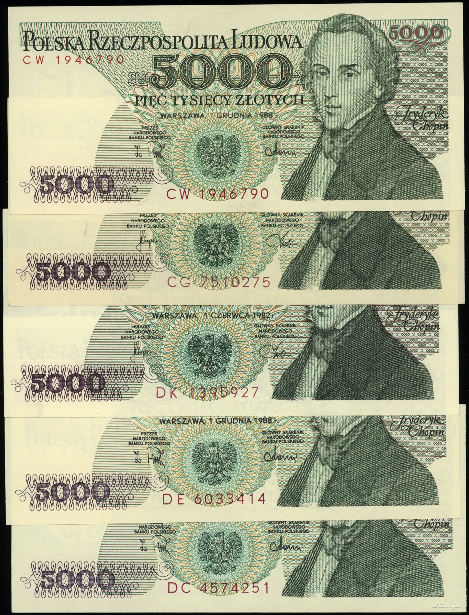Polska, zestaw: 5 x 5.000 złotych, 1982–1988