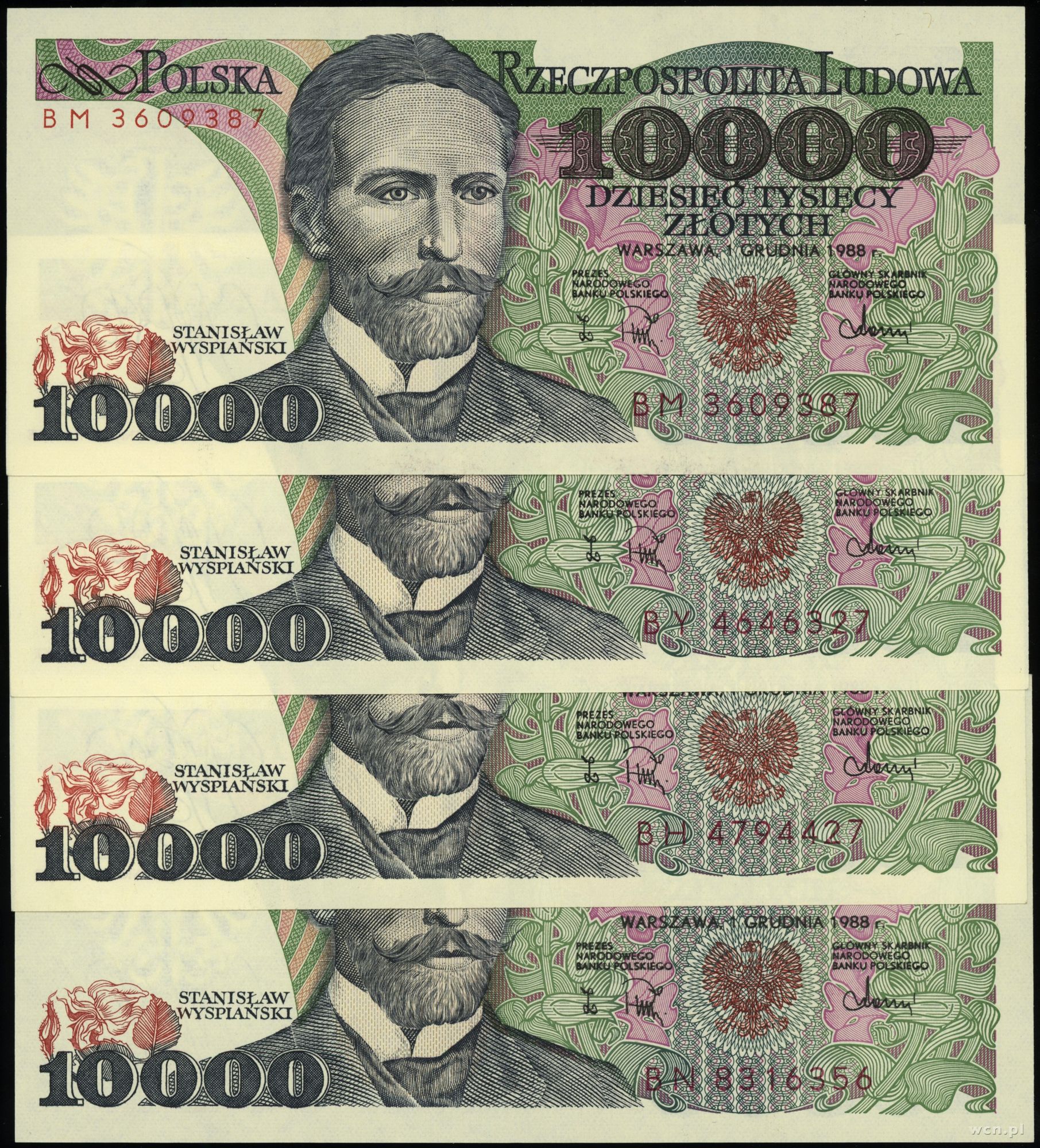 Polska, zestaw: 4 x 10.000 złotych, 1.12.1988
