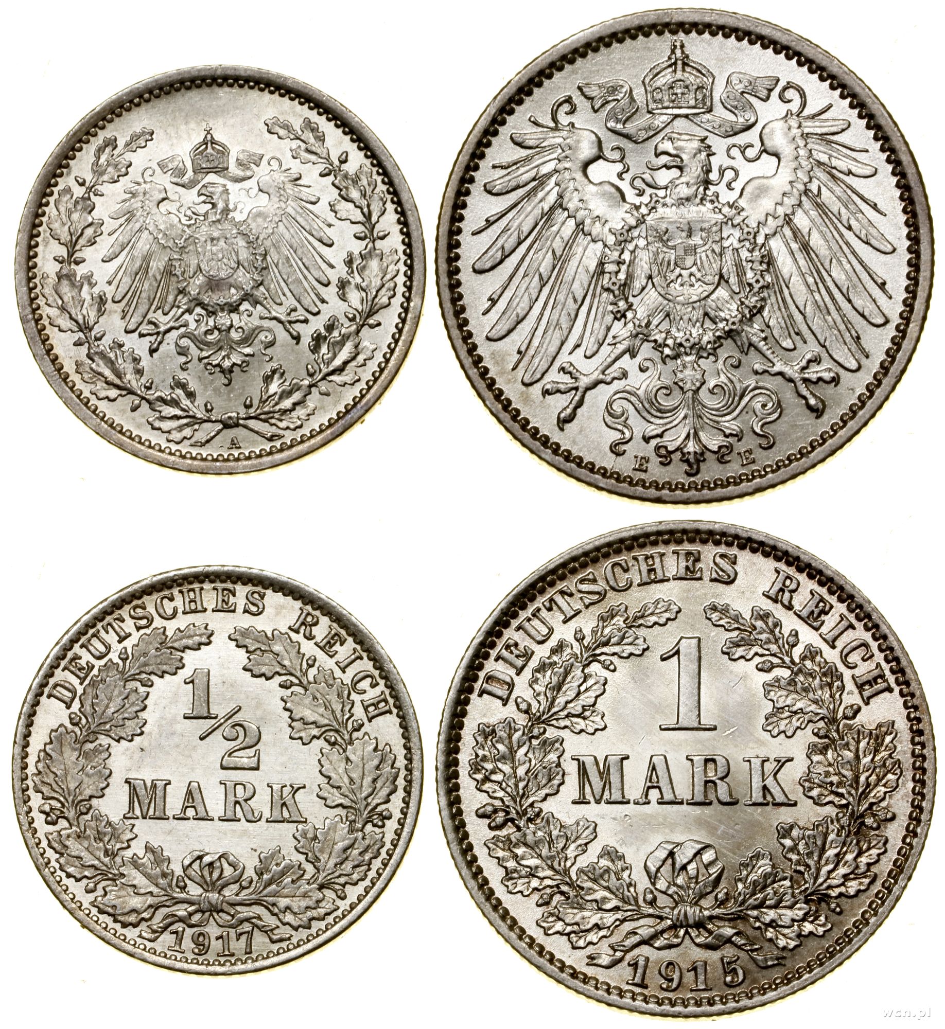 1 marka 1915 E, Muldenhütten / 1/2 marki 1917 A, Berlin | I/I- |