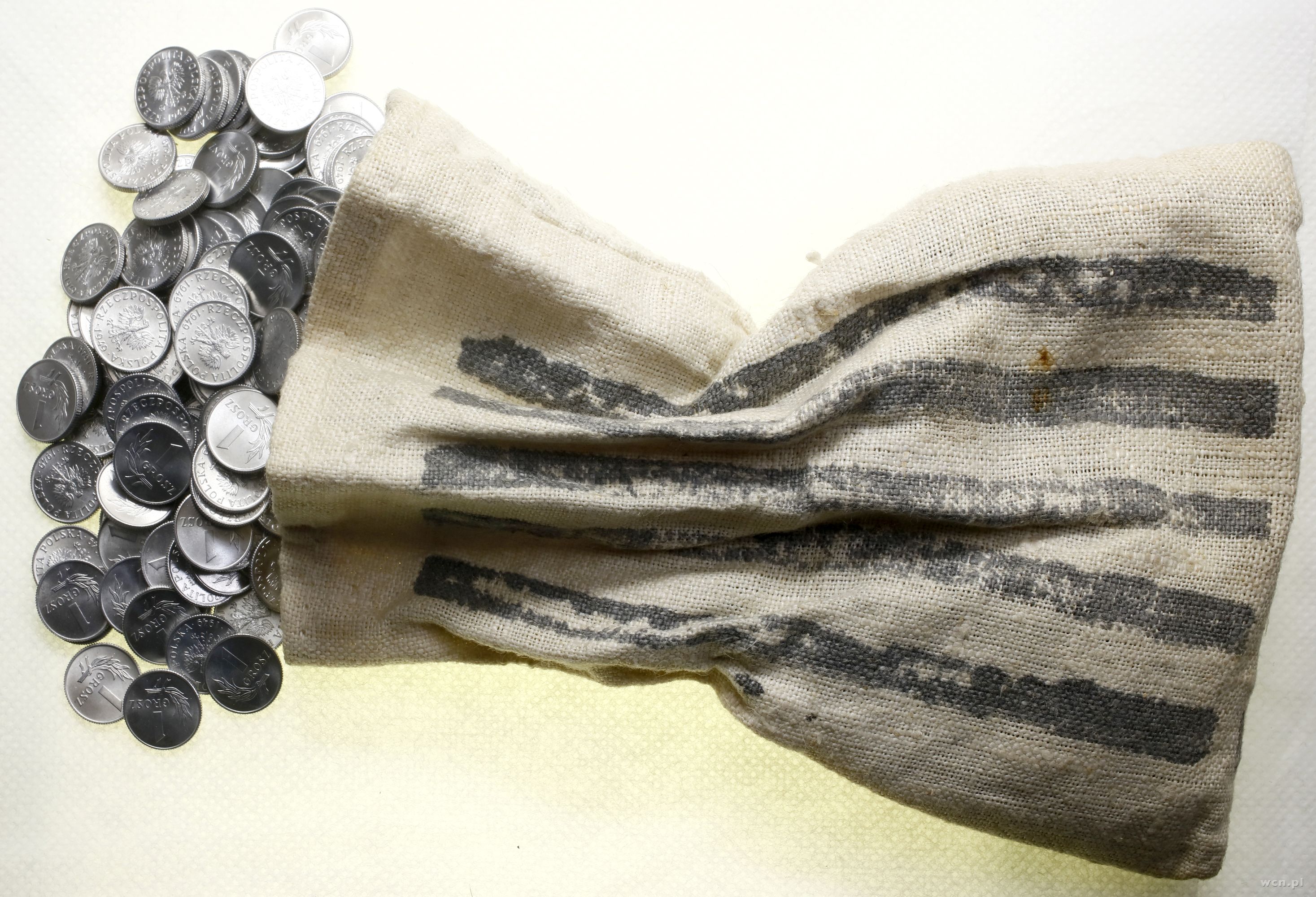 Polska, woreczek menniczy z monetami o nominale 1 grosz (ok. 486 sztuk), 1949