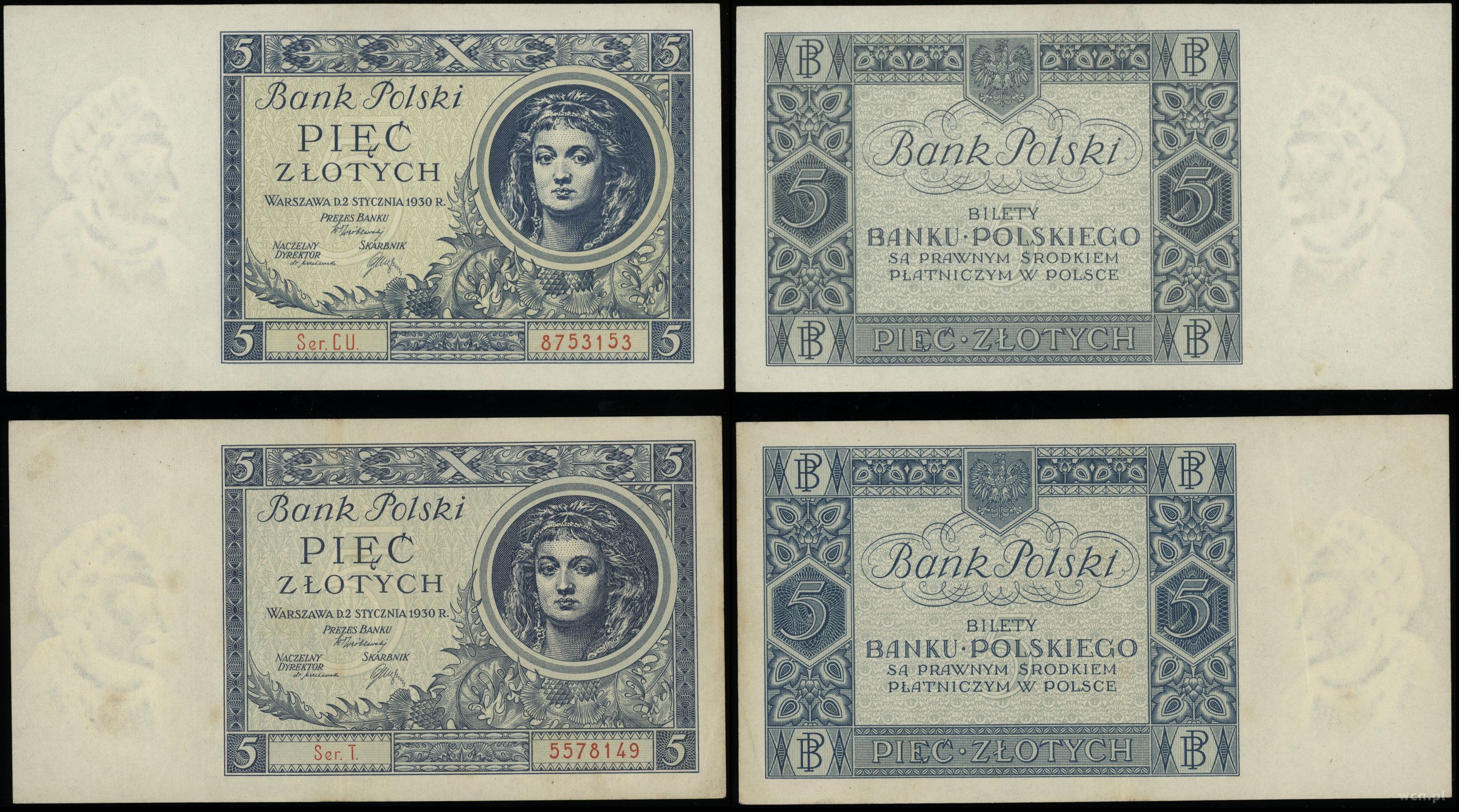 Polska, zestaw: 2 x 5 złotych, 2.01.1930
