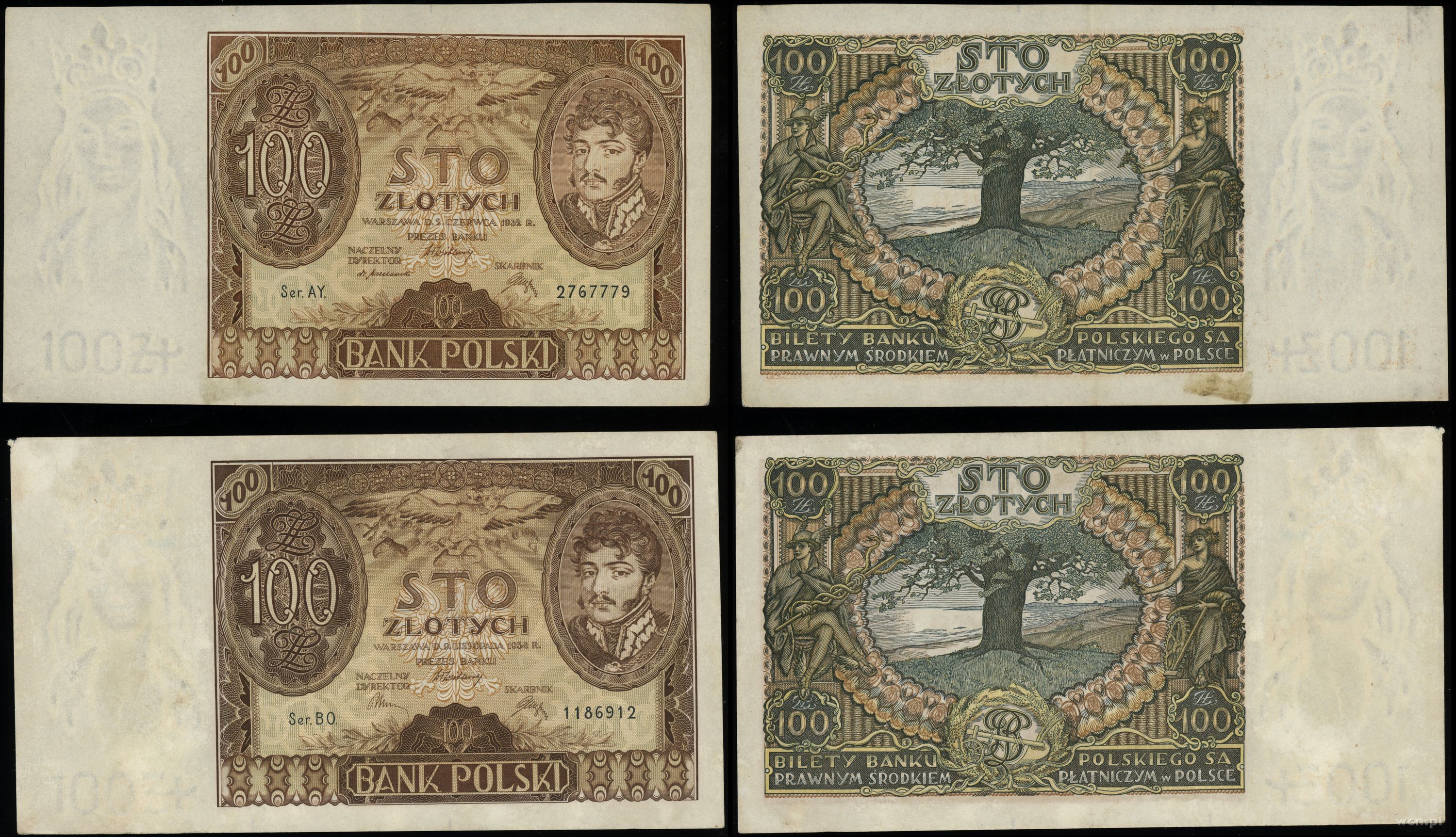 1) 100 złotych 2.06.1932 seria AY, dodatkowy znak wodny –... | III |
