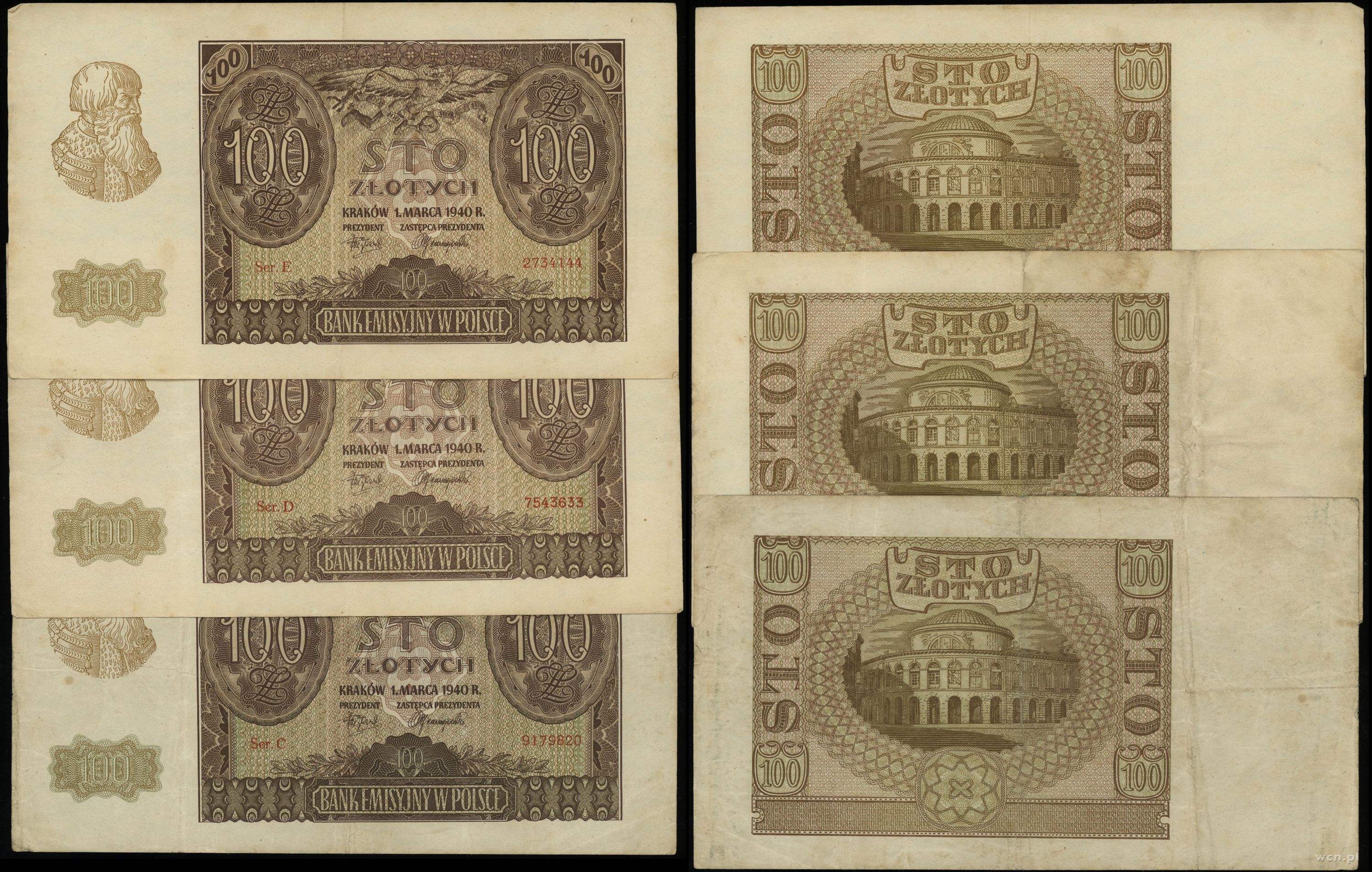 Polska, zestaw: 3 x 100 złotych, 1.03.1940