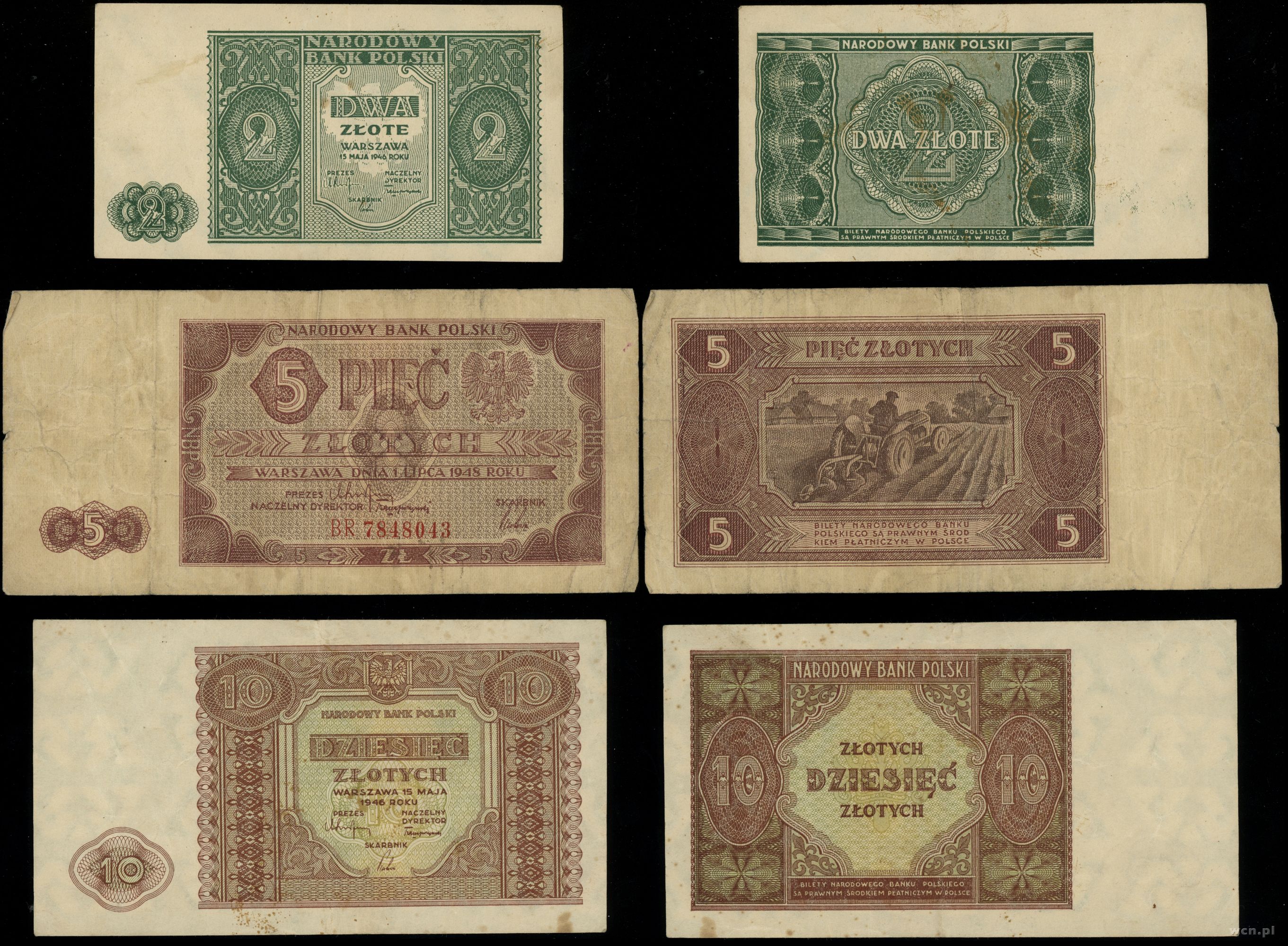 Polska, zestaw 6 banknotów, 1916–1948