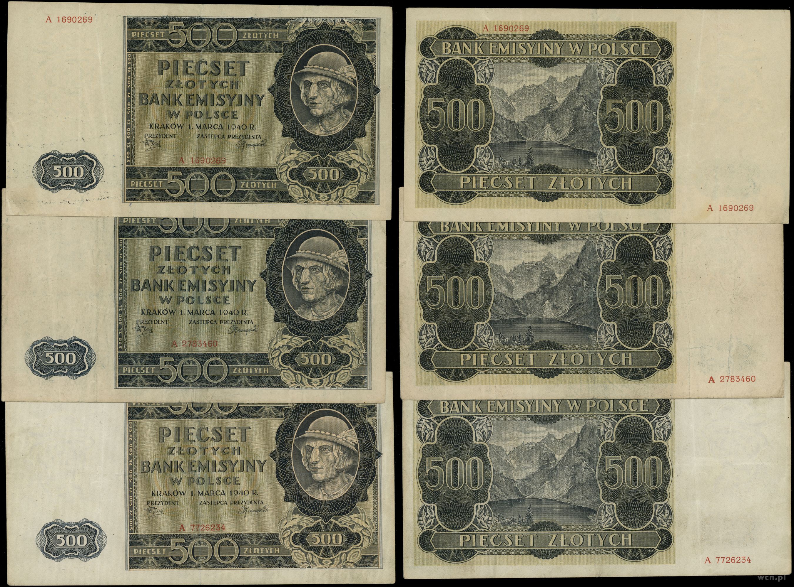 Polska, zestaw: 3 x 500 złotych, 1.03.1940
