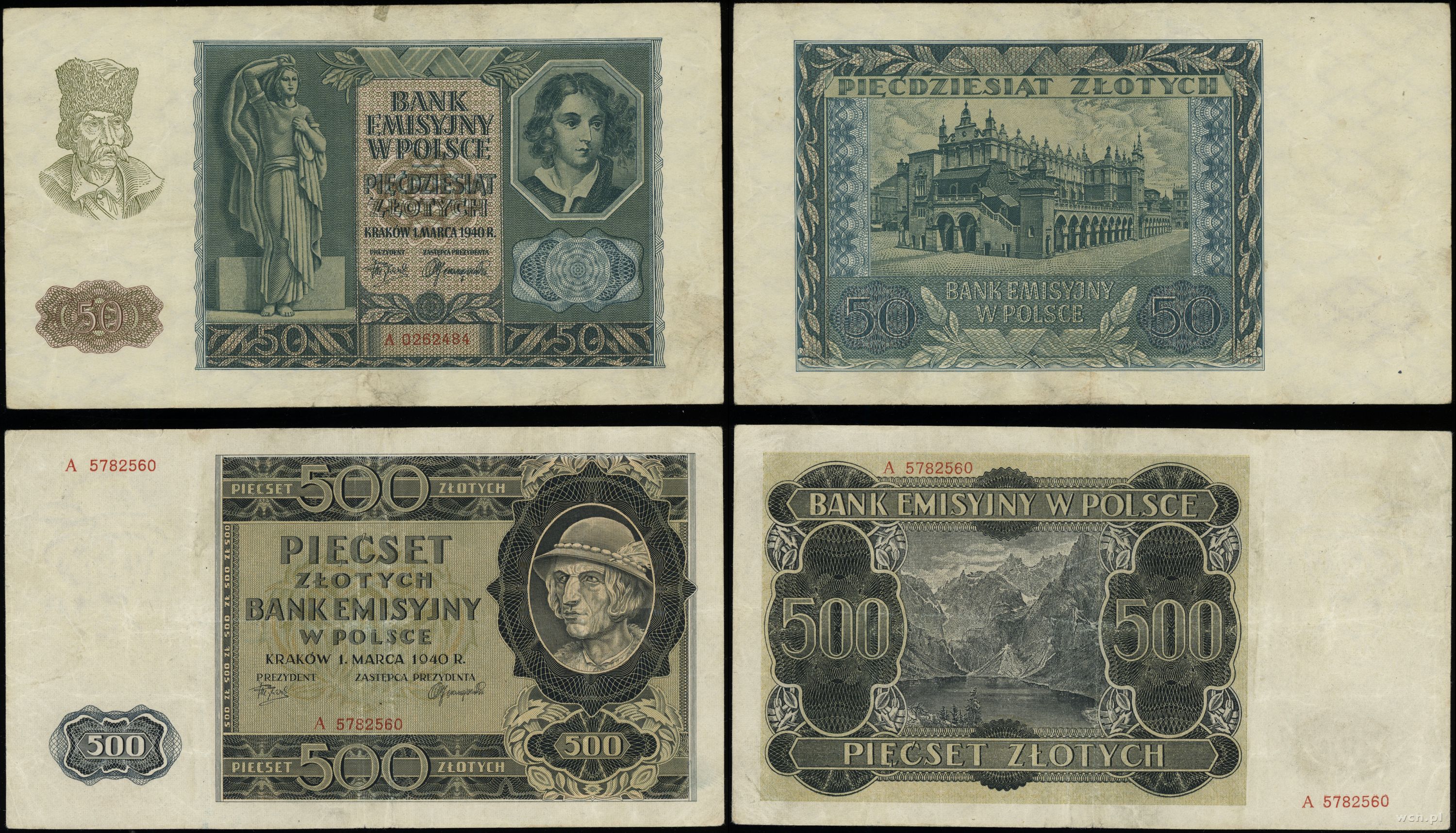 Polska, zestaw: 50 i 500 złotych, 1.03.1940