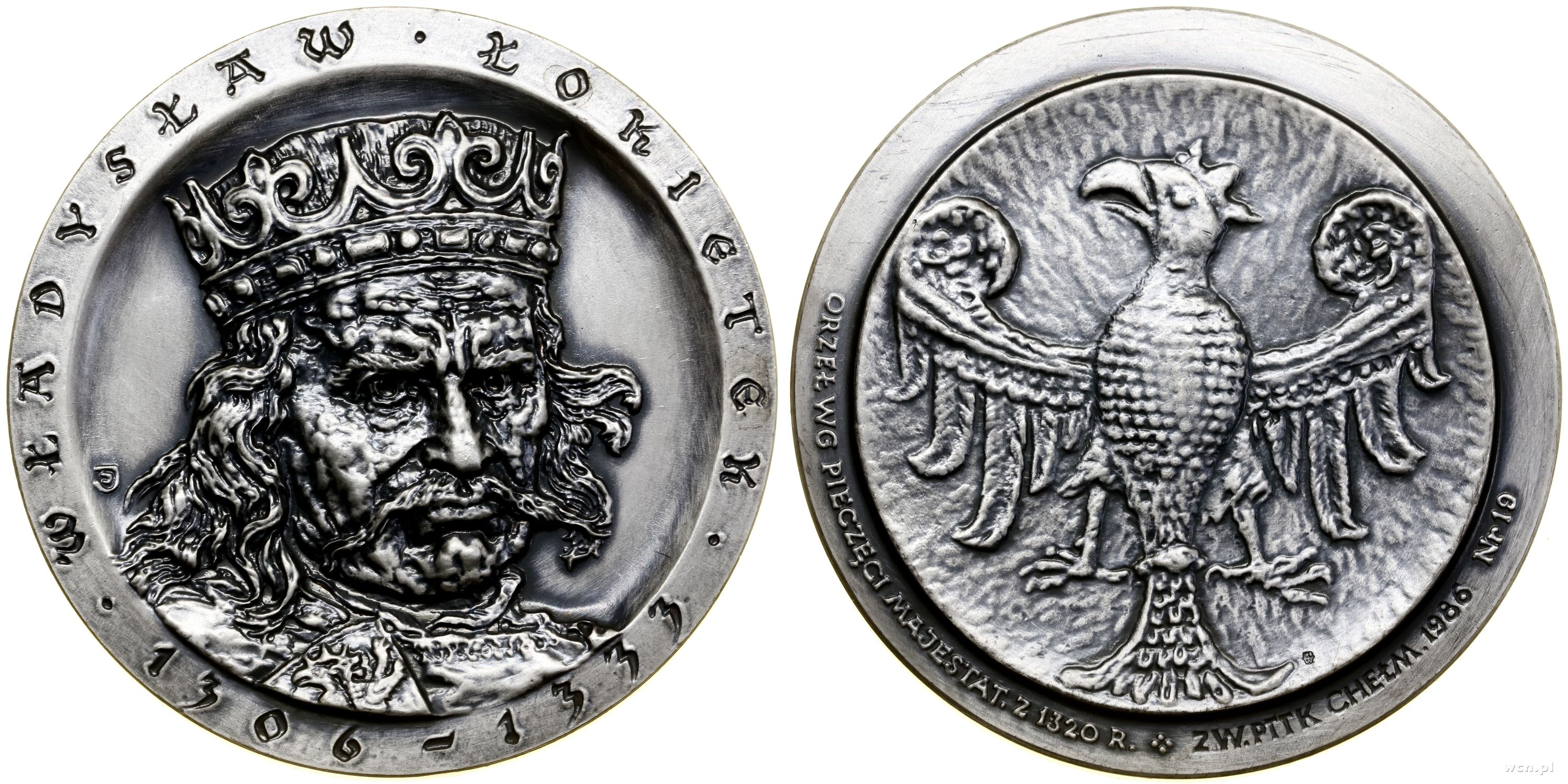 Polska, medal z serii królewskiej chełmskiego oddziału PTTK – Władysław Łokietek, 1989