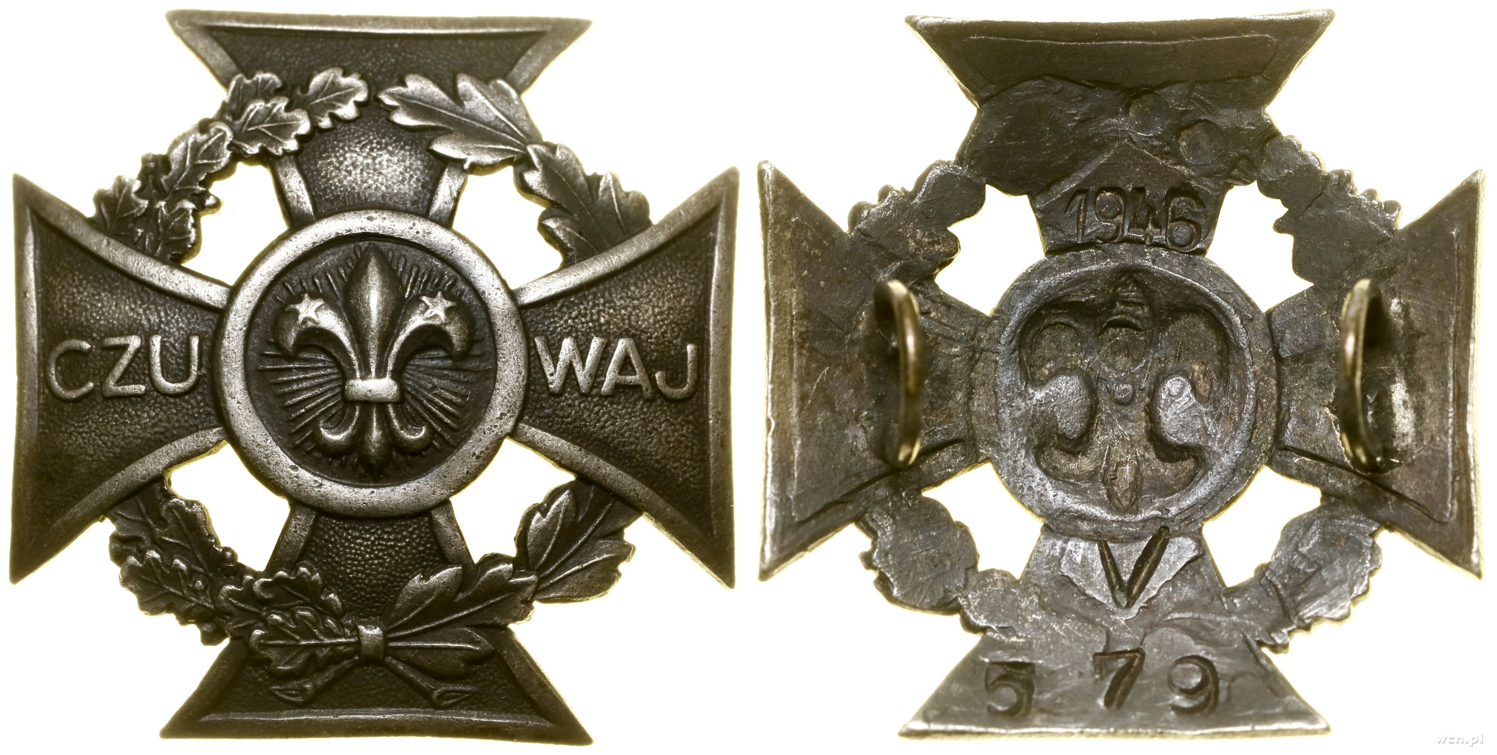 Krzyż, w kątach wieniec, na poziomej belce CZU - WAJ, w m... | II+ |